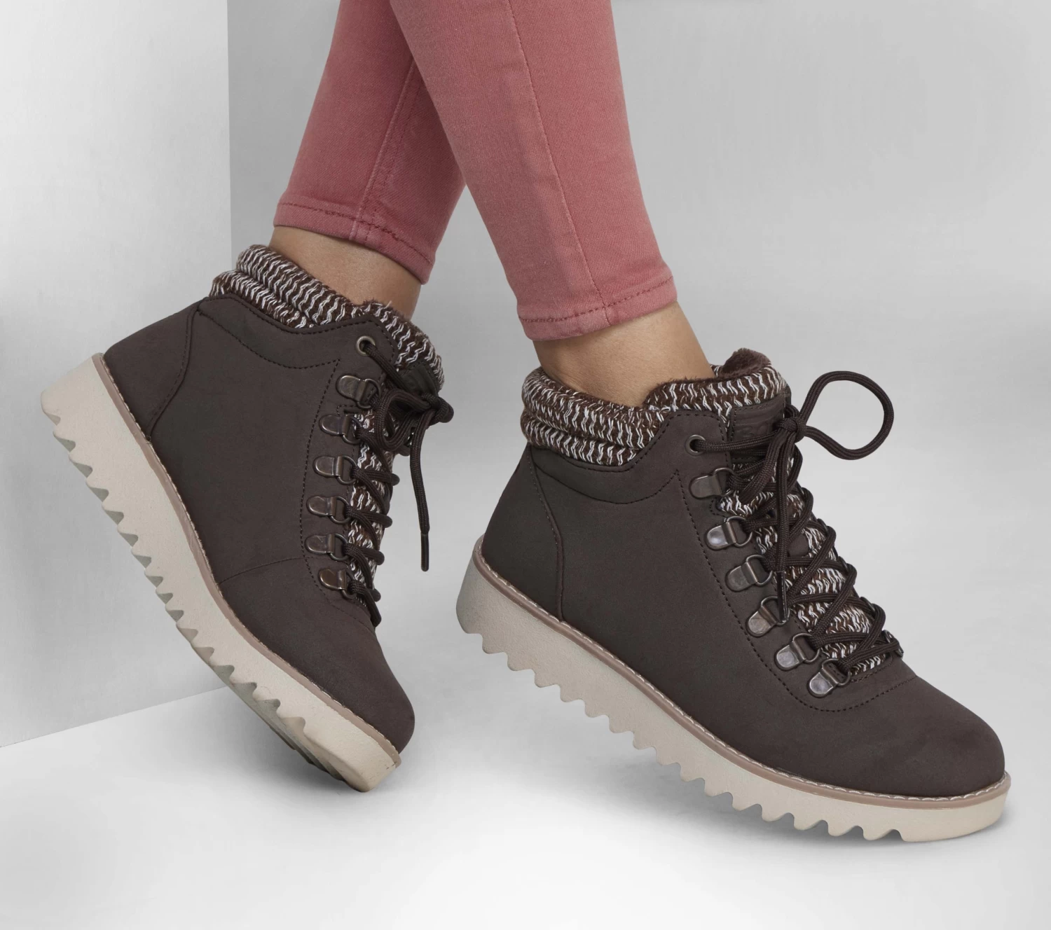 Style yourself in cozy vibes and feet-loving comfort with BOBS from Skechers BOBS Mountain Kiss – Cute Factor. This lace-up hiker style boot features a synthetic leather upper with a sweater-knit trim and a cushioned Skechers Memory Foam insole. For every BOBS purchase, a donation is made to animals in need.
