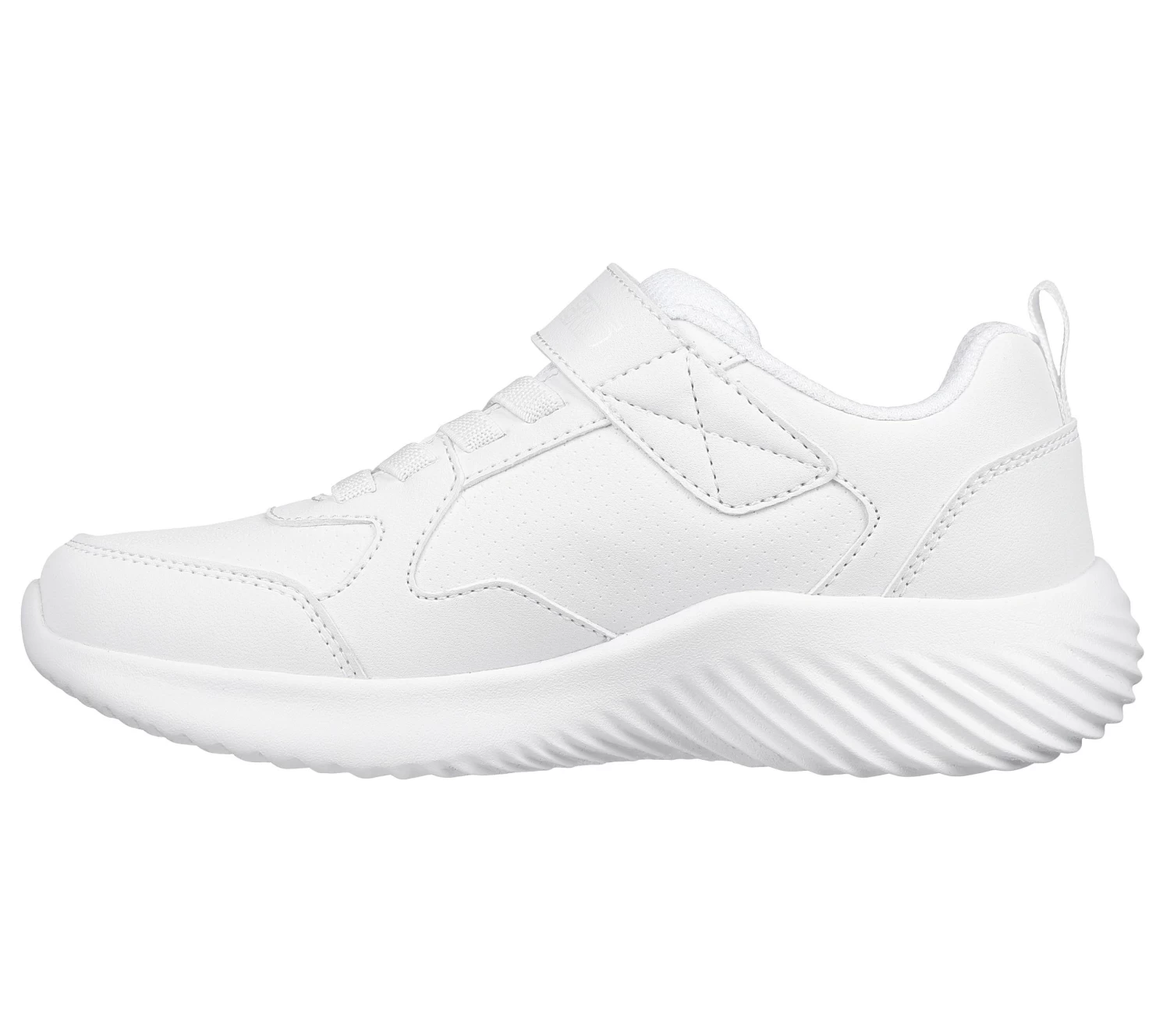 Head back to school with a fresh kick in Skechers Bounder – Power Study. This lightweight sporty design features a synthetic upper with stretch laces and adjustable instep strap. Monochromatic color options ideal for school uniforms.