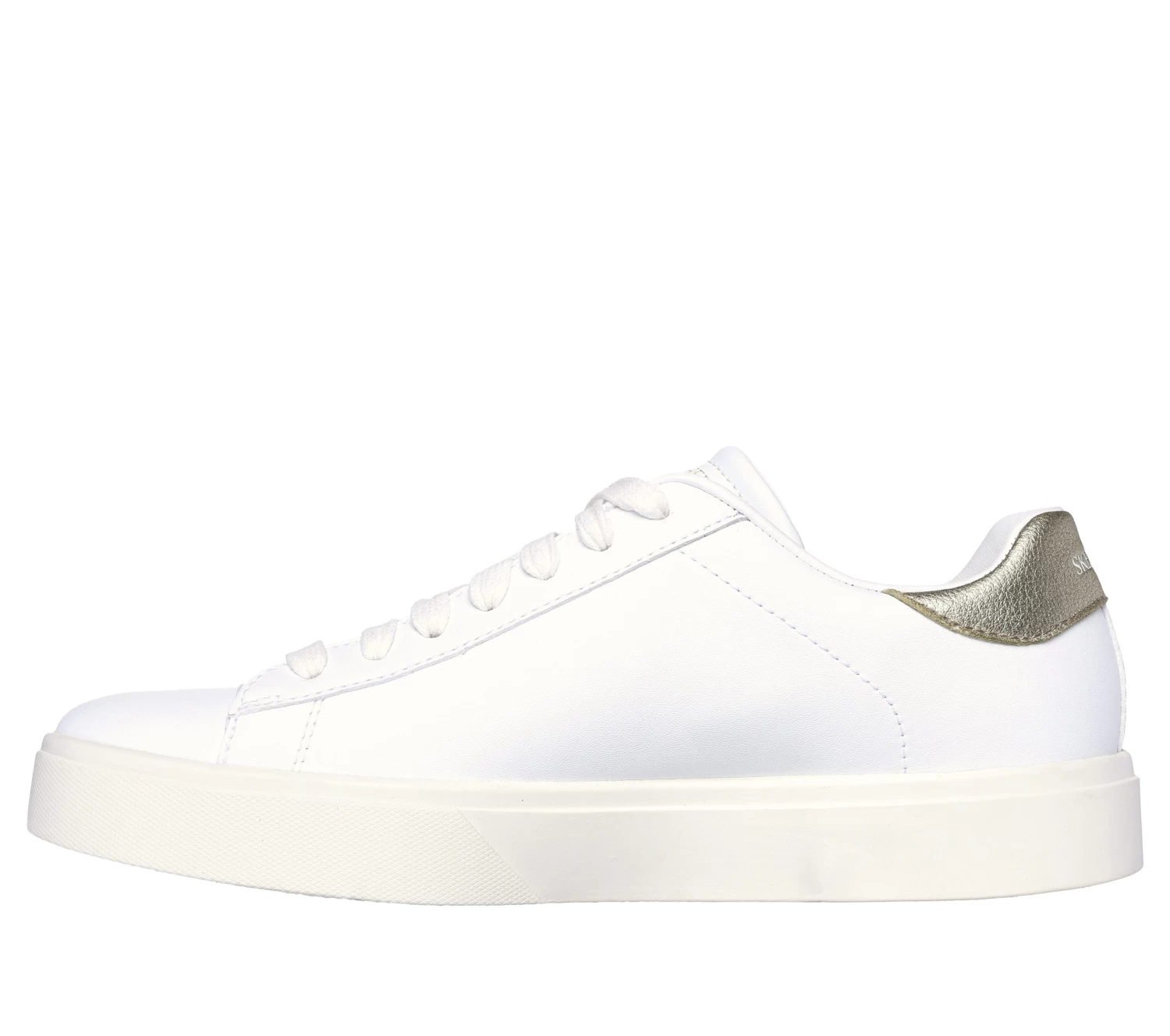 A modern classic style combines with comfort in Skechers Eden LX – Beaming Glory. This lace-up design features a synthetic duraleather upper with metallic side detail and a cushioned Skechers Air-Cooled Memory Foam® insole.