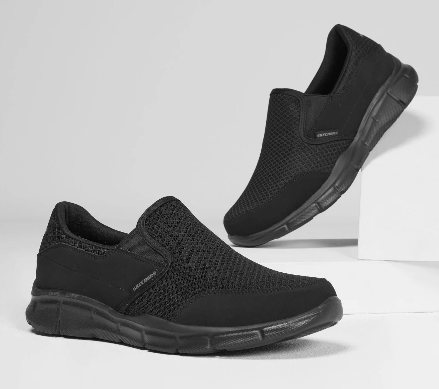 Get amazing comfort and sporty style even easier with Skechers Equalizer – Persistent. This sporty slip-on features a smooth faux leather and mesh upper with a moc toe and cushioned Memory Foam insole.