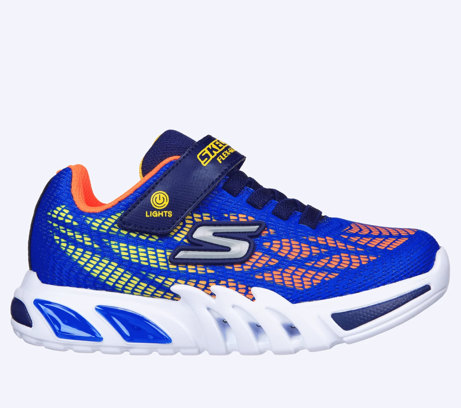Lights, cushioning and all around sporty looks combine wearing Skechers S-Lights® Flex-Glow Elite – Vorlo. This active design features an ombre mesh upper with webbed synthetic overlay, a stretch-lace front, instep strap, and a shock-absorbing light-up midsole.