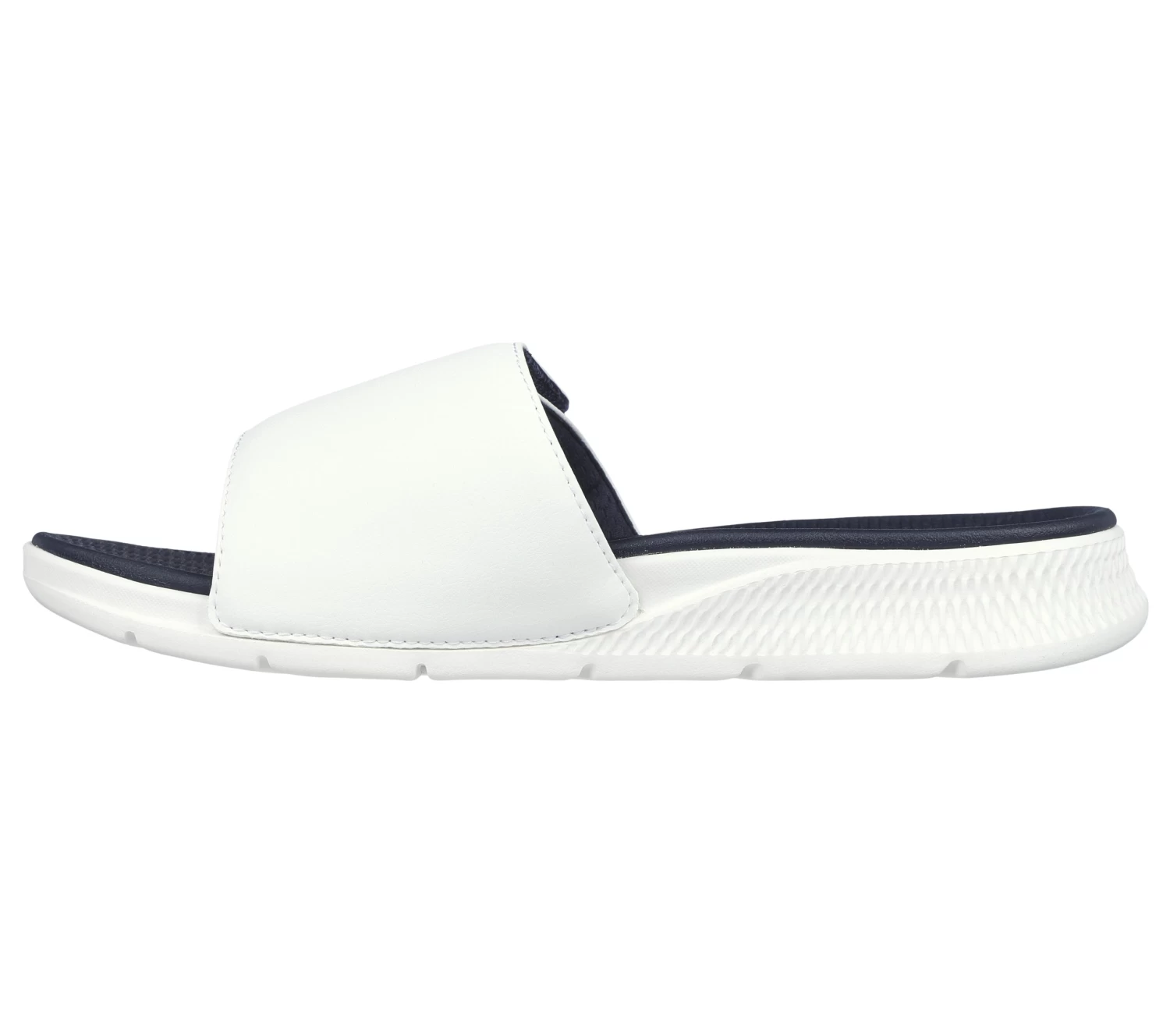Keep cool in super light comfort wearing the Skechers GO Consistent – Watershed sandal. This sporty slide sandal features a smooth synthetic adjustable upper, Goga Mat contoured comfort footbed and ULTRA LIGHT cushioned midsole.