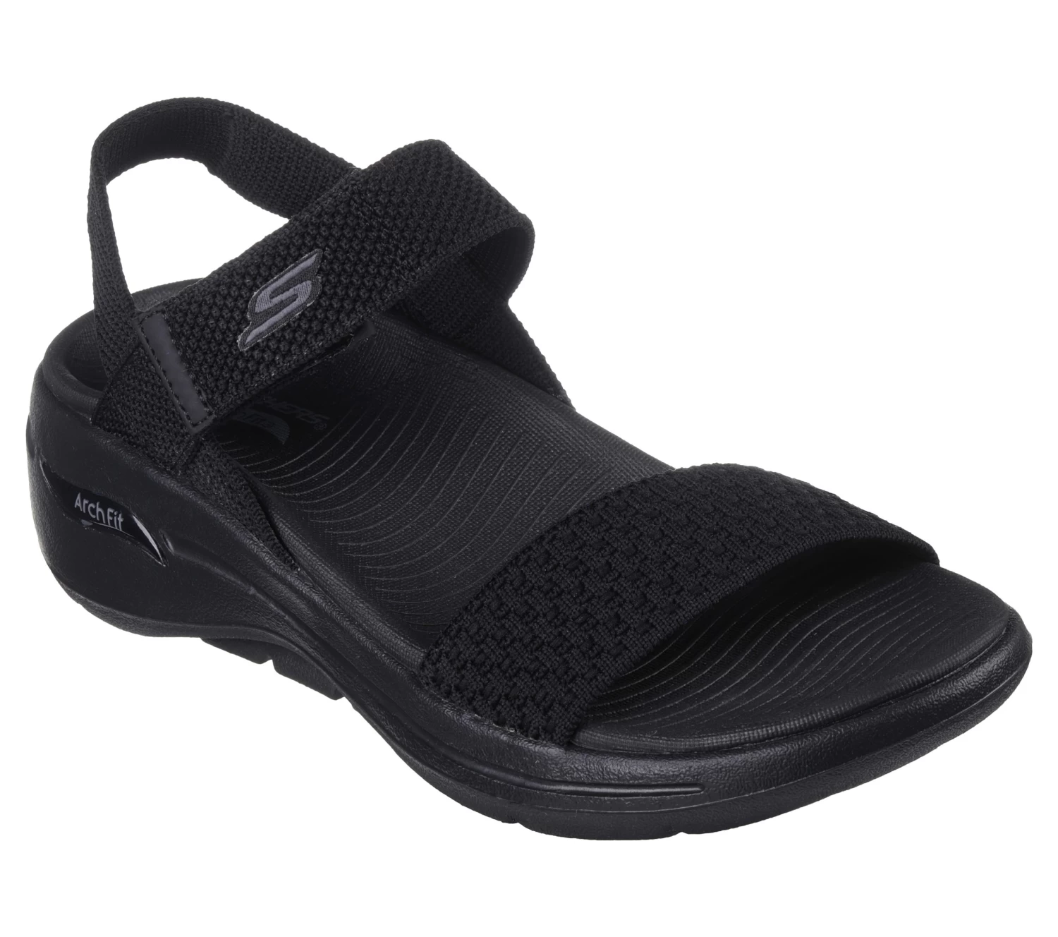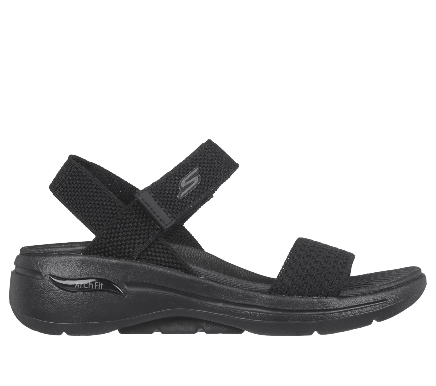 Warm-weather style and supportive comfort combine in Skechers GO WALK® Arch Fit® Sandal – Polished. This Arch Fit® designed sandal features a mesh knit strap upper with a hook-and-loop closure, contoured Goga Mat® footbed, lightweight ULTRA GO® cushioning, and Comfort Pillar Technology® for added support.