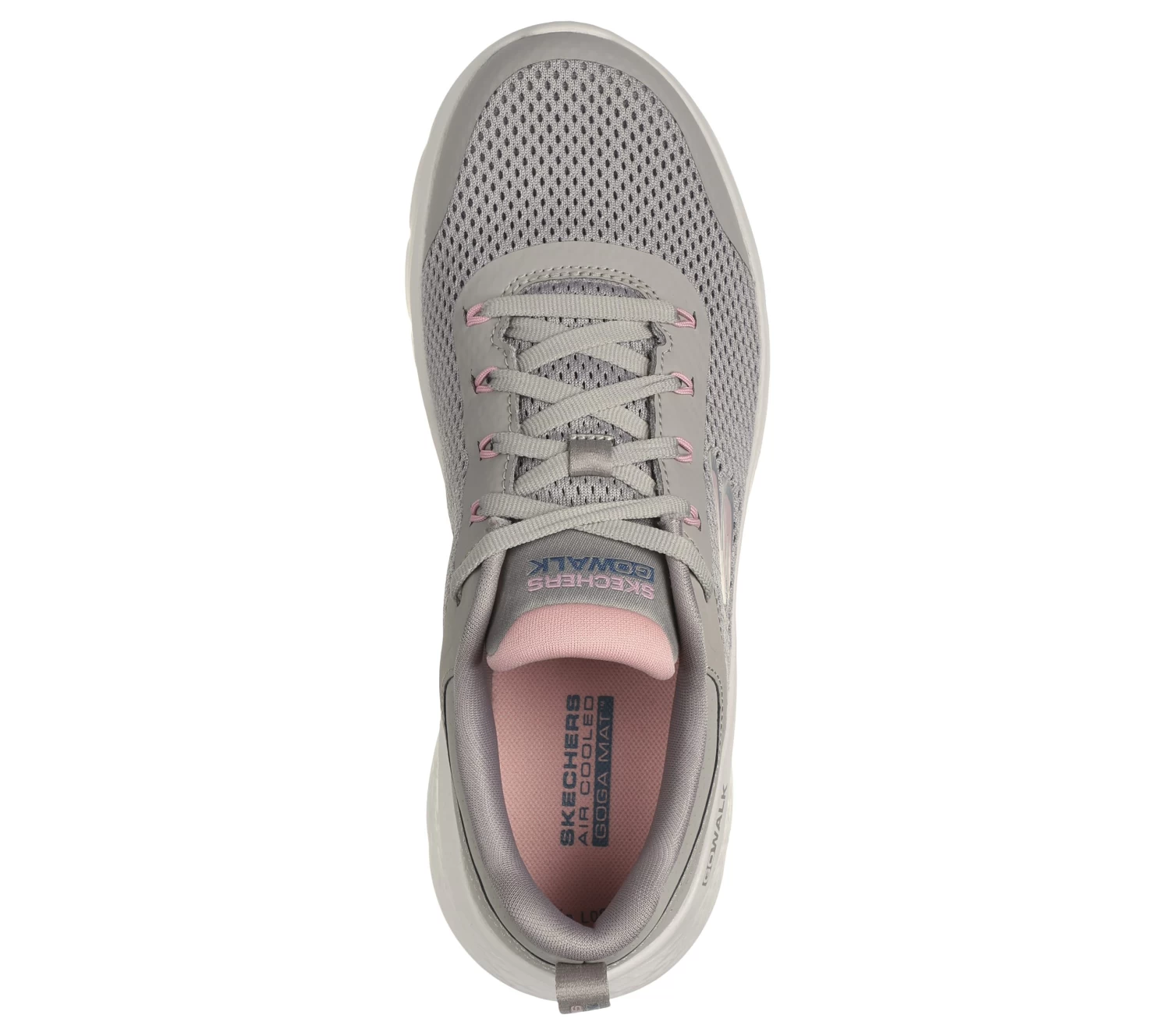 Get an extra step of comfort with Skechers GO WALK® Flex – Caley. This sporty design features a lace-up mesh and synthetic upper with a breathable Skechers Air-Cooled Goga Mat insole and lightweight ULTRA GO® cushioning.