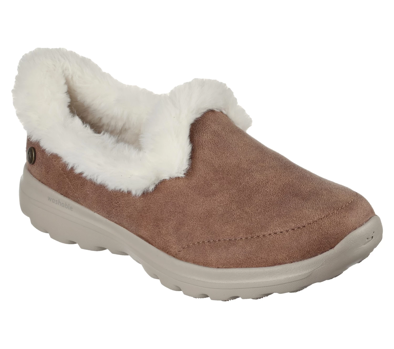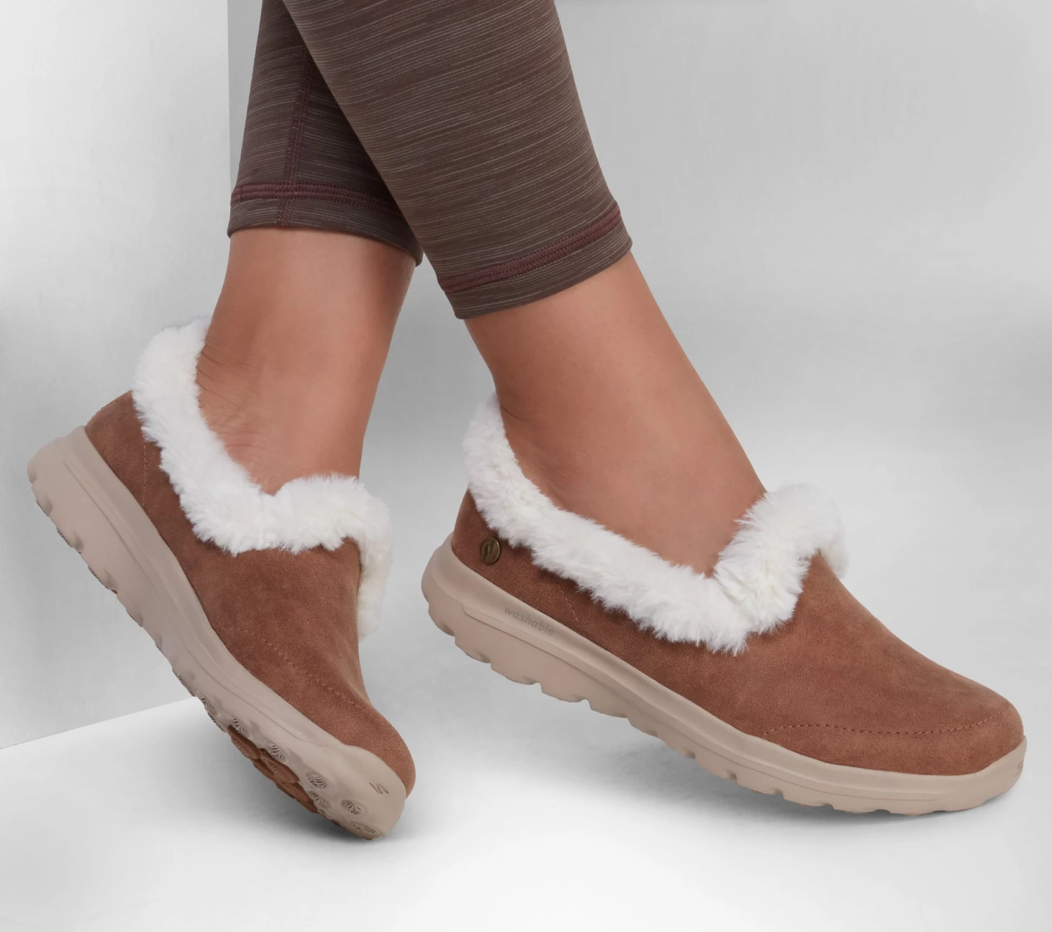 Cozy easy-wearing comfort arrives this season in Skechers GO WALK Lounge – Chillin. This casual pull-on features a synthetic Perform-Tex upper with faux-fur lining and trim, Skechers Air-Cooled Goga Mat insole, plus a lightweight ULTRA GO® cushioned midsole.