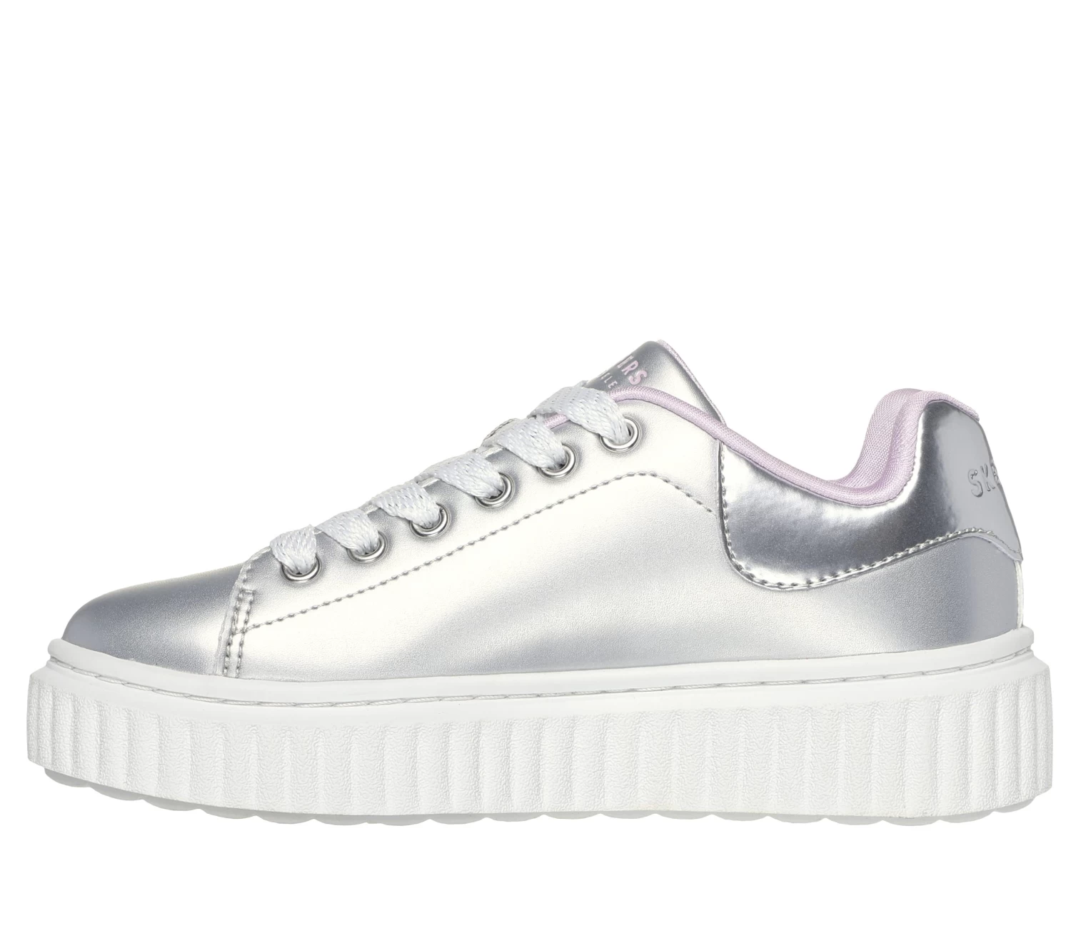 Show off stellar style with Skechers Street™ Hi Ridge – Superstardom. This lace-up fashion sneaker features a synthetic upper with metallic star and trim details, a cushioned comfort insole, and platform outsole.