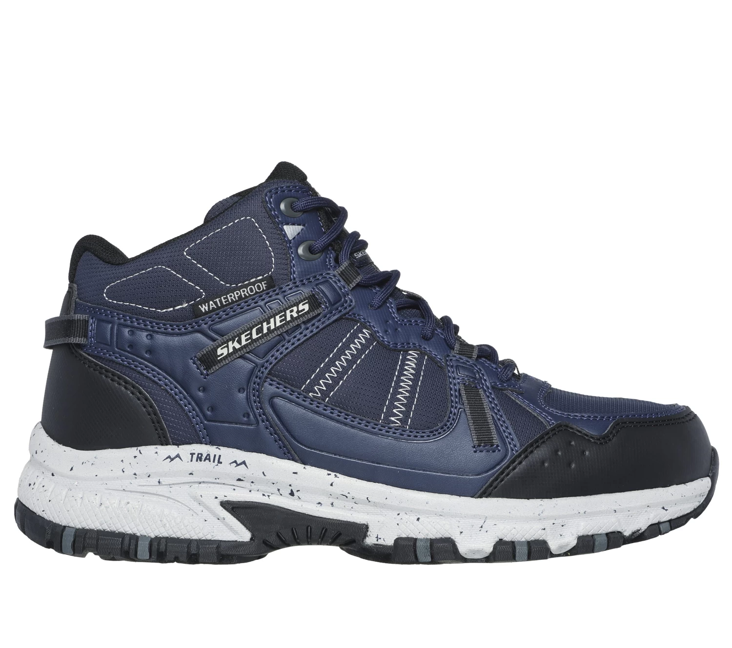 Hike the great outdoors in sure-footed comfort with Skechers Hillcrest – Cross Shift. This sporty walking trail design features a waterproof lace-up leather, synthetic and mesh upper with stitched details, plus a Skechers Memory Foam™ cushioned insole.