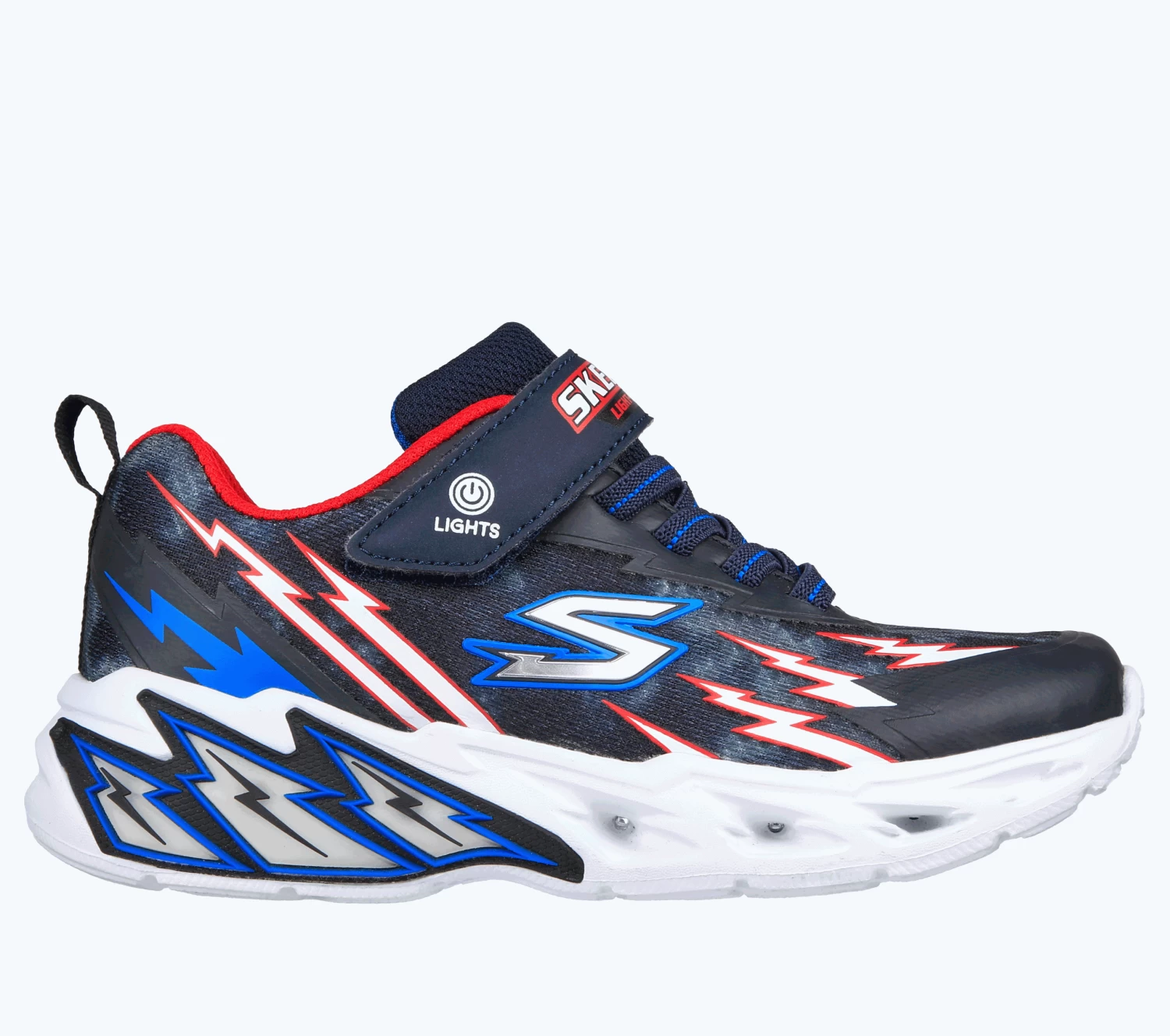 Step with a bolt of comfort and sporty style in Skechers S-Lights®: Light Storm 2.0. This casual lightweight slip-on features a mesh and synthetic upper with a light-up midsole.