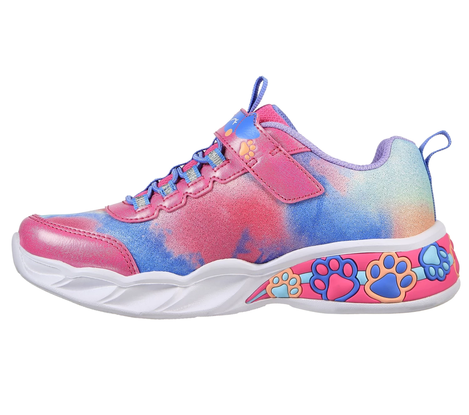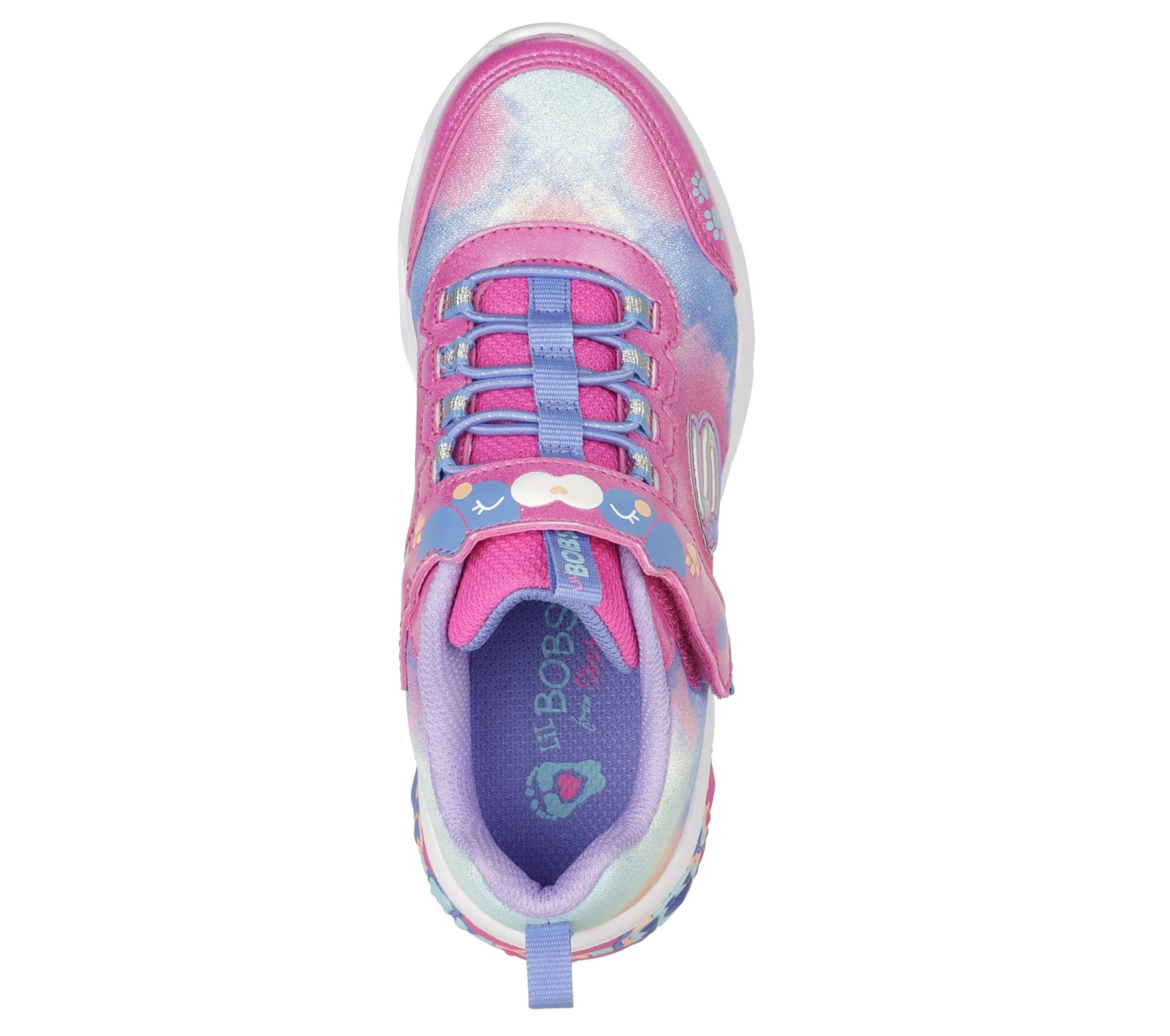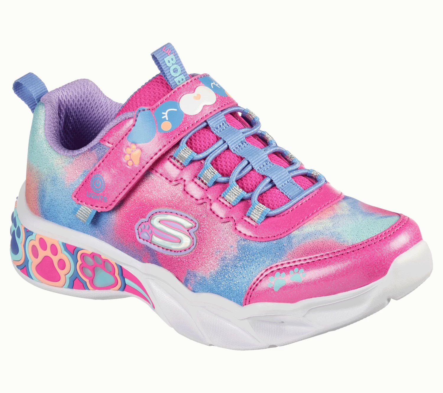 Light-up the fun in colorful style and pawfect comfort wearing BOBS from Skechers™ Lil BOBS – Pretty Paws. This lightweight slip-on design features a glitter mesh fabric and smooth synthetic upper with a bungee-laced front and cushioned light-up midsole. For every BOBS purchase, a donation is made to animals in need.