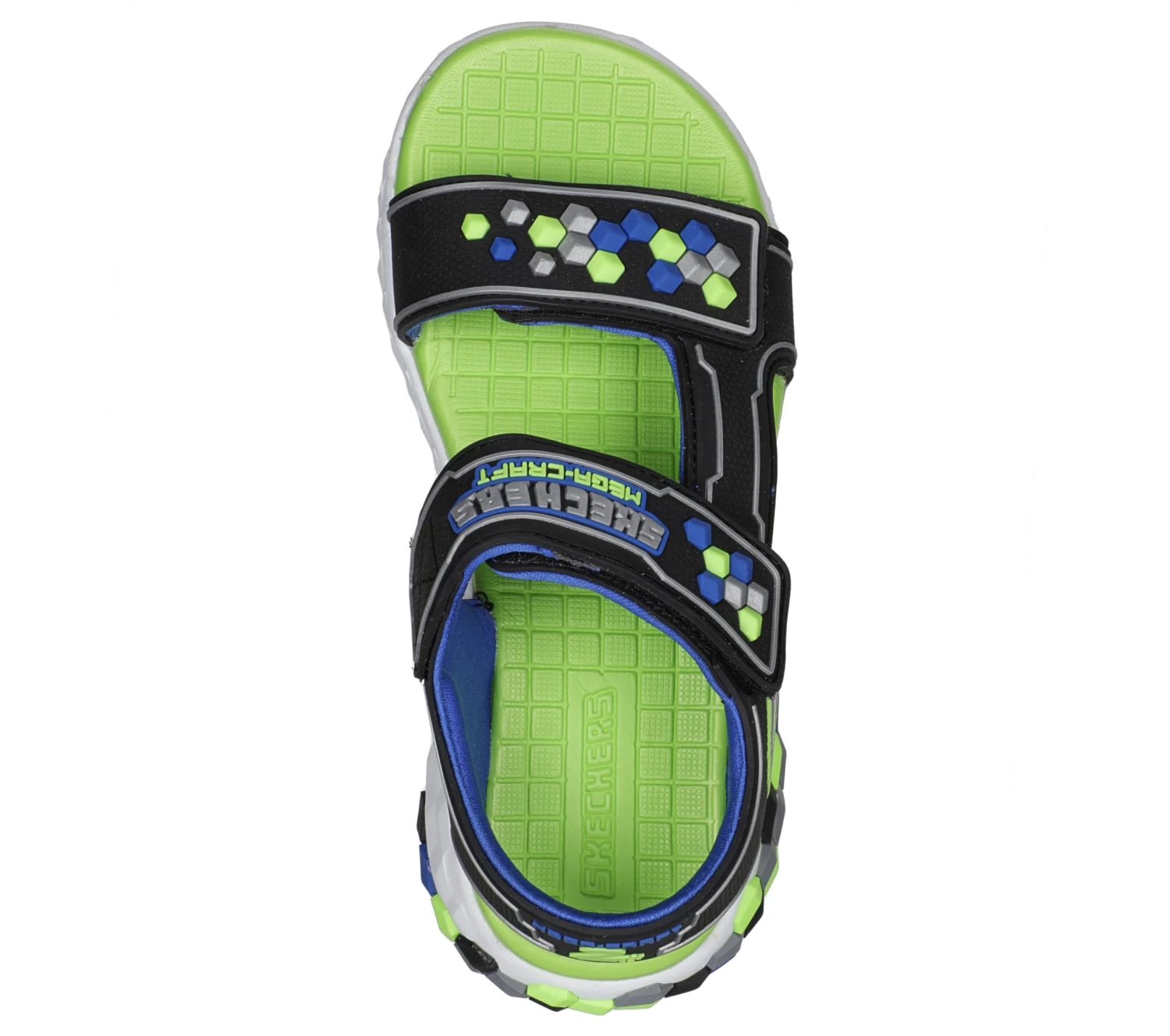 Have fun in block to block style wearing Skechers Mega-Splash 2.0 – Cuboshore. This Mega Craft™ themed sandal features a synthetic upper with hook and loop straps, plus a cushioned comfort footbed.