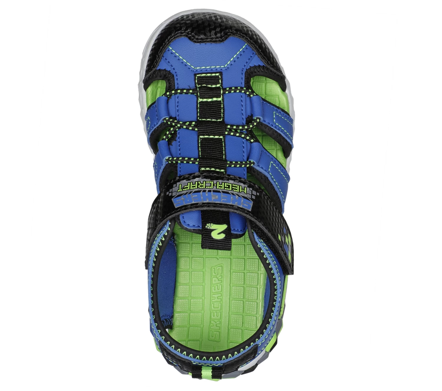 Have fun in block to block style wearing Skechers Mega-Splash 2.0. This Mega Craft® themed sandal features a synthetic upper with lace detail and an instep strap, plus a cushioned comfort footbed.
