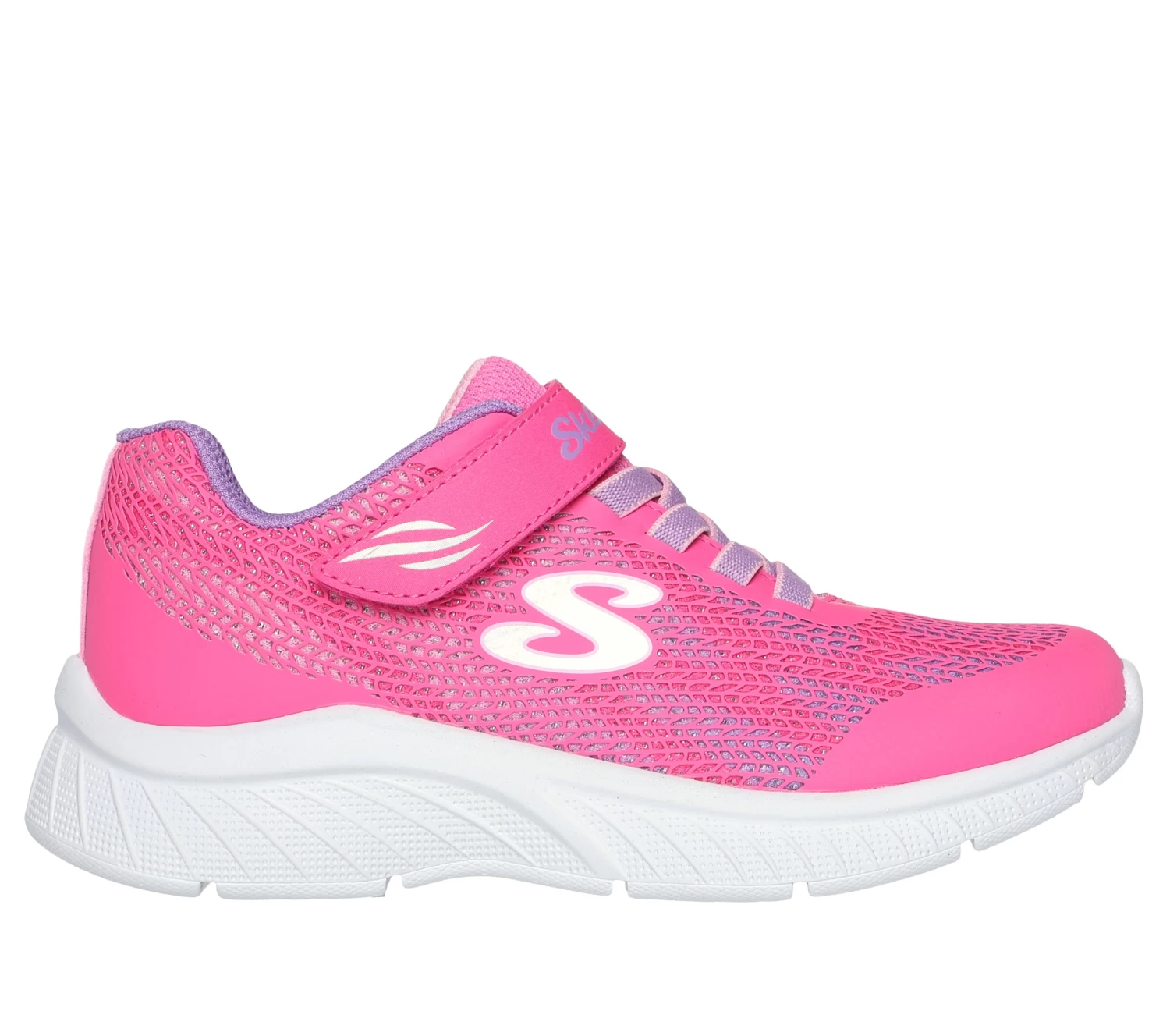 Easy-to-wear comfort meets colorful style in Skechers Microspec Plus. This lightweight design features an athletic mesh and synthetic upper with stretch laces and an instep strap.