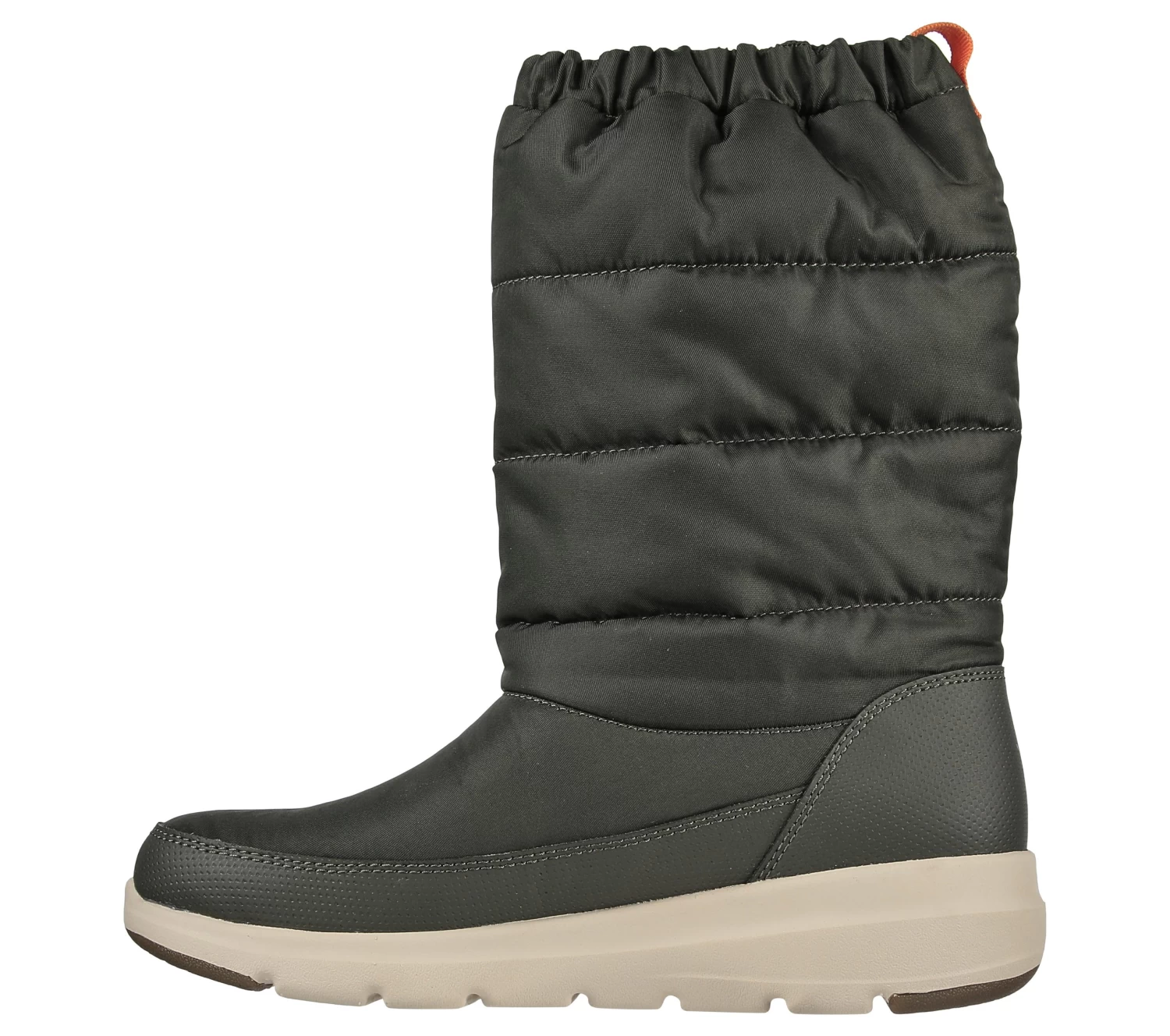 Stay warm throughout the season with Skechers On-the-GO Glacial Ultra – Wintertime. This cold-weather puffer boot features a woven fabric upper with an exposed side zip closure, Skechers Air-Cooled Goga Mat™ insole and lightweight ULTRA GO® cushioning.