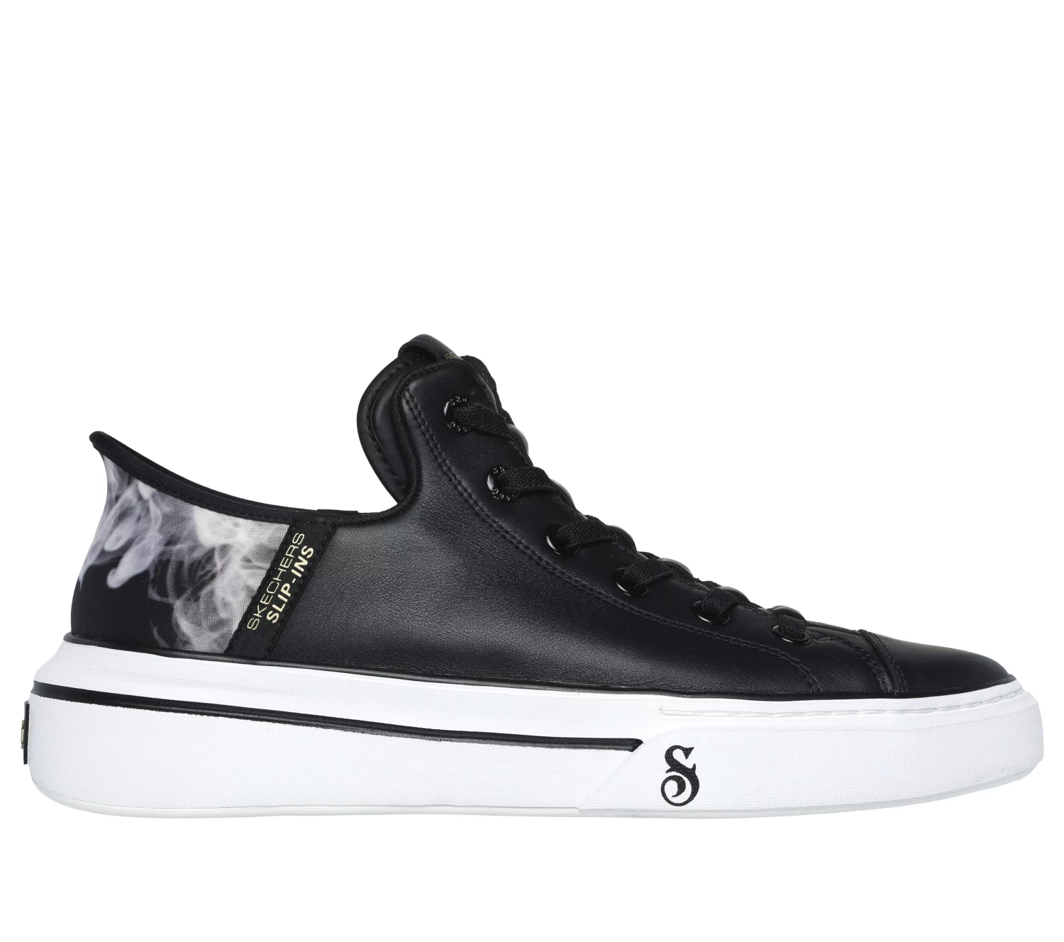 Introducing Skechers x Snoop Dogg: Premium Leather Slip-ins Snoop One – OG. This OG court-style sneaker is on it with a Skechers Hands Free Slip-ins® molded heel panel (love that Heel Pillow™), smooth premium leather upper, stretch laces, and smoke graphics on the heel. Just Slip In™ Snoop style.
