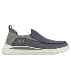 A favorite look gets an update in comfort with Skechers Proven – Evers. This slip-on Classic Fit slip-on features a canvas upper with cushioned Air-Cooled Memory Foam® insole and Goga Mat Arch for added support.