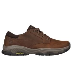 Bring classic style and comfort everywhere in Skechers Relaxed Fit®: Craster – Fenzo. This casual lace-up features a smooth oiled leather upper with a Skechers Air-Cooled Memory Foam® comfort insole, Skechers Goga Mat Arch™ cushioning for added support and a durable Goodyear® Performance Outsole.