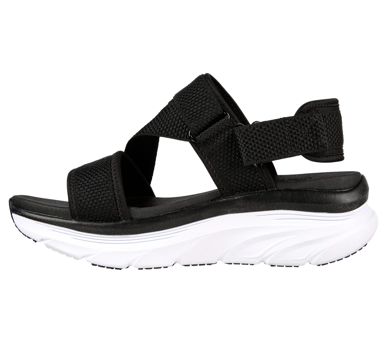 Be good to your feet with comfort and style in Skechers Relaxed Fit®: D’Lux Walker – Kind Mind. This sporty Z-strap casual sandal features webbing fabric upper with adjustable straps and a cushioned Luxe Foam® footbed.