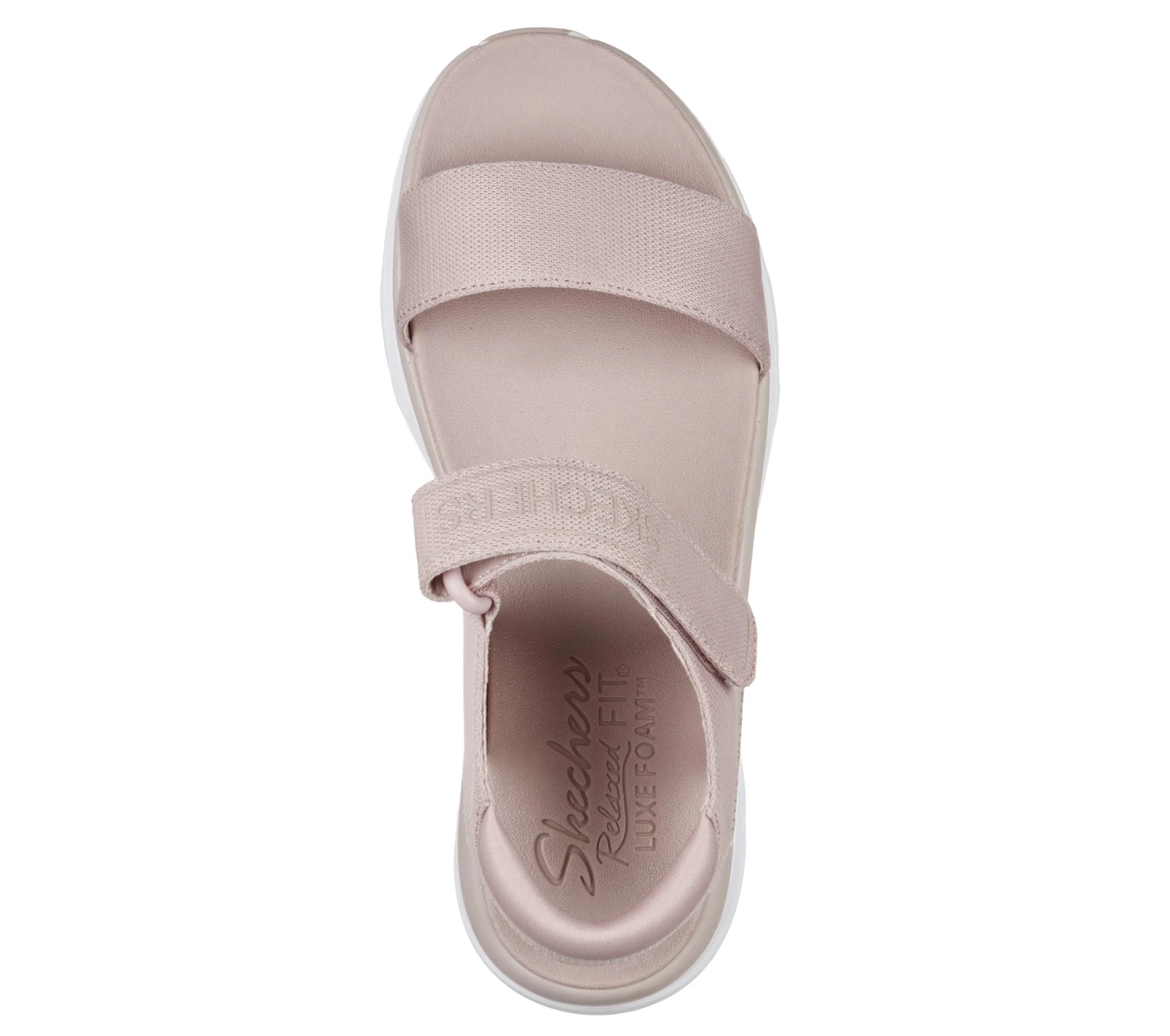 Enjoy long walks in supportive comfort wearing Skechers Relaxed Fit®: D’Lux Walker – New Block. This sporty ankle-strap sandal features an athletic mesh knit vamp and Luxe Foam® footbed.