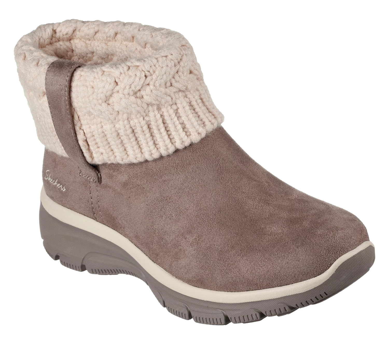 Stay comfy all season long with Skechers Relaxed Fit®: Easy Going – Cozy Weather. This fold-over pull-on bootie features a treated 3M® Scotchgard® synthetic microsuede upper with a sweater-knit trim, plus a cushioned Skechers Air-Cooled Memory Foam® insole.