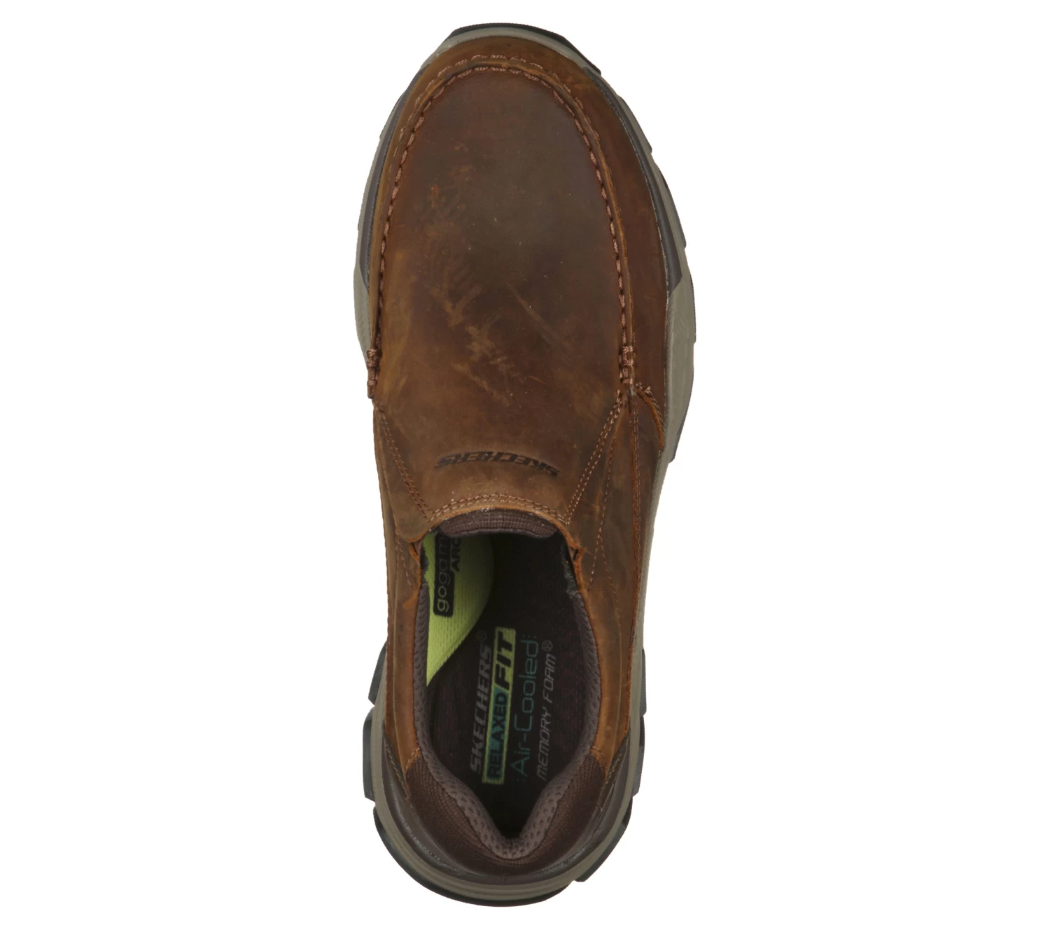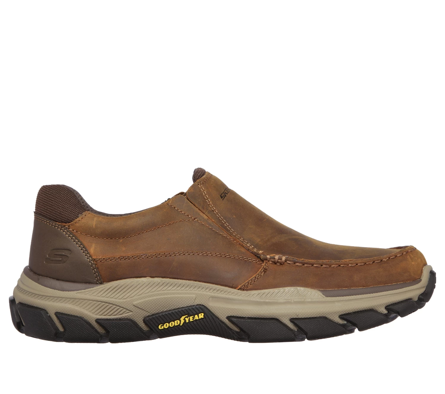Earn some serious style cred and stay fully comfortable wearing Skechers Respected – Catel. This casual Relaxed Fit® slip-on features a smooth oiled leather upper with a cushioned Air-Cooled Memory Foam® insole and Goodyear® rubber traction sole.