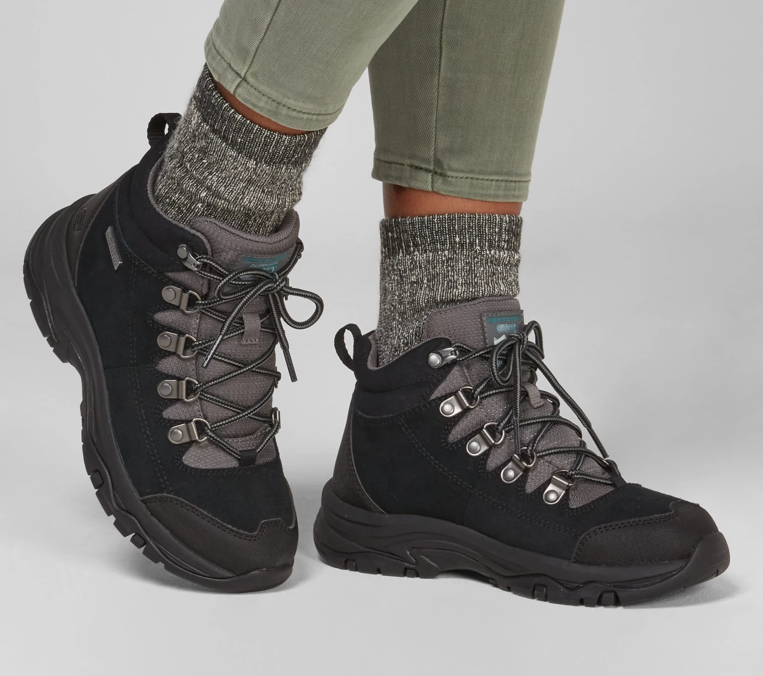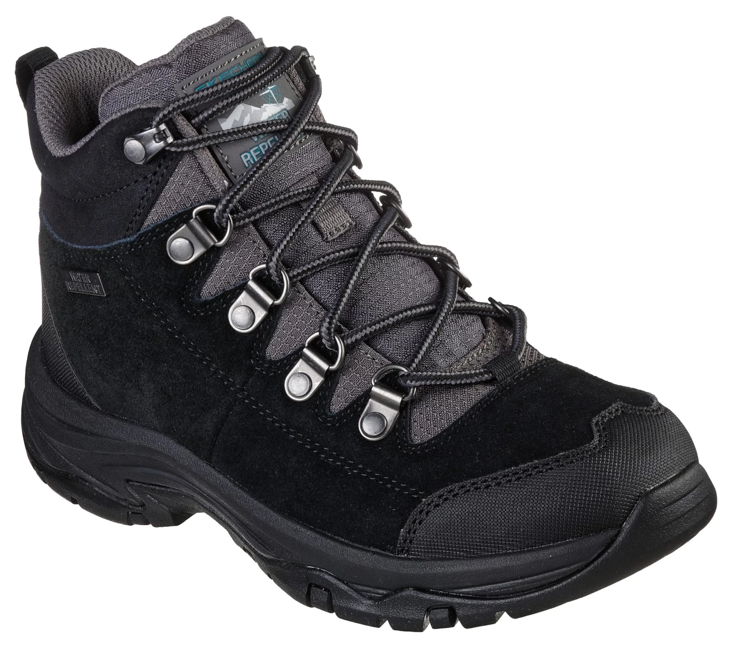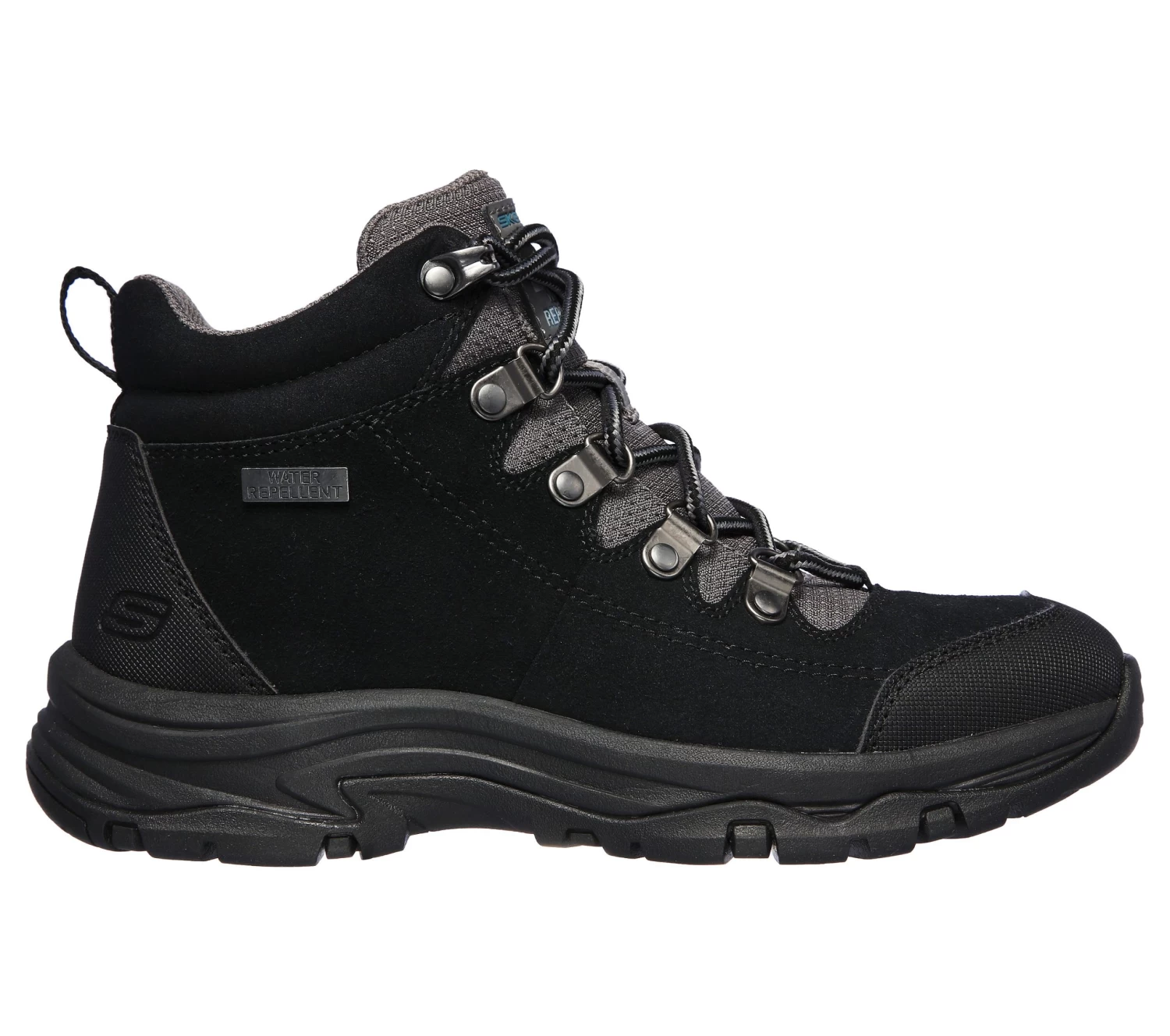 Take outdoor style to new heights in Skechers Relaxed Fit®: Trego – El Capitan. This ankle-height lace-up hiking boot features a water-repellent design with soft suede and mesh fabric upper, rugged outsole, plus Air-Cooled Memory Foam® cushioned insole.
