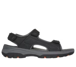 Travel all day in long-lasting comfort with the Skechers Tresmen – Garo sandal. This Relaxed Fit open-toe sandal features a durable synthetic upper with a cushioned Luxe Foam footbed, and a hook and loop ankle-strap closure.