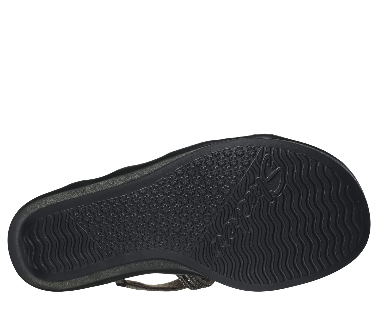 Sunny-weather glitz combines with easygoing comfort in Skechers Cali® Rumble On – Classy Way. This classic wedge sandal features a synthetic knit upper with woven metallic detail, and a cushioned Luxe Foam® footbed.