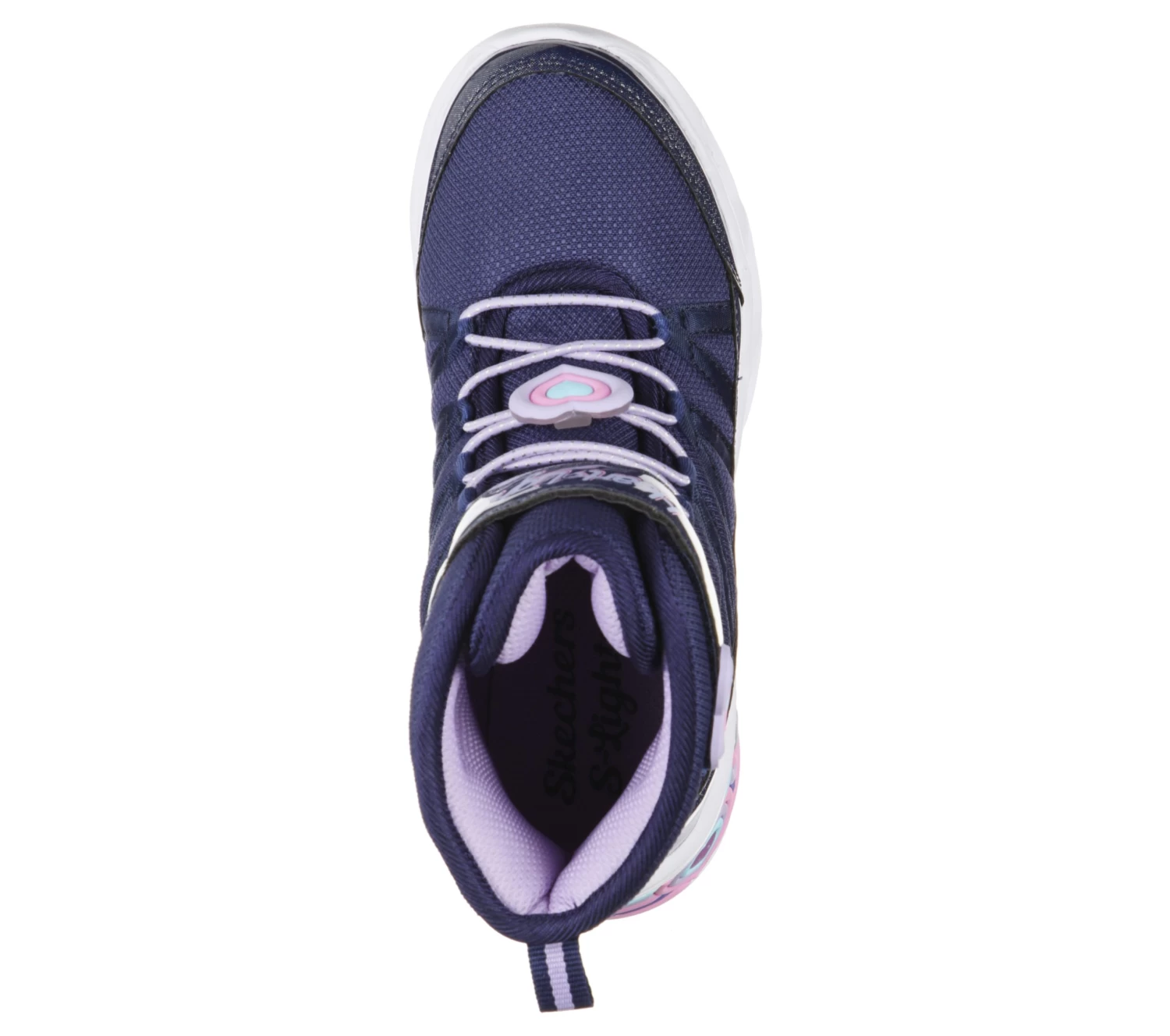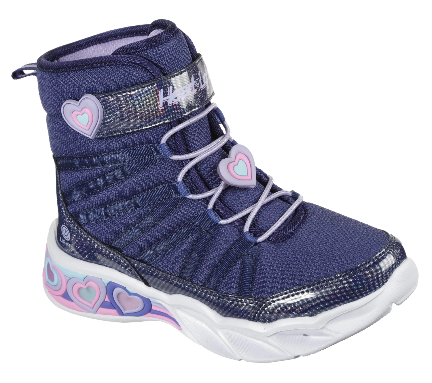 She’ll make the season brighter with gorgeous detail in Skechers Sweetheart Lights – Love to Shine. This slip-on sneaker boot features a mesh and glitter patent synthetic upper with a bungee-laced front and multicolor heart-shaped detail light-up midsole.