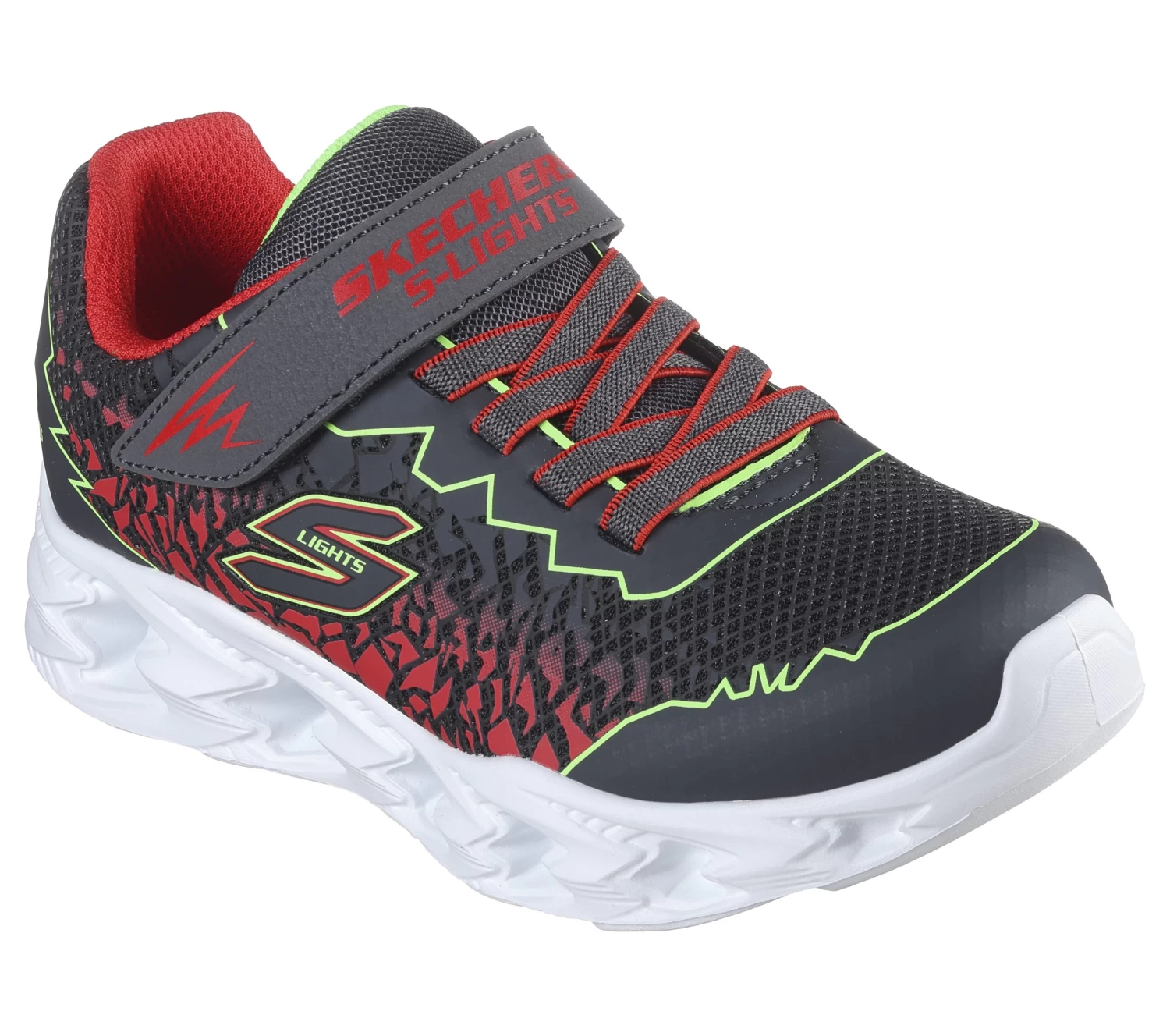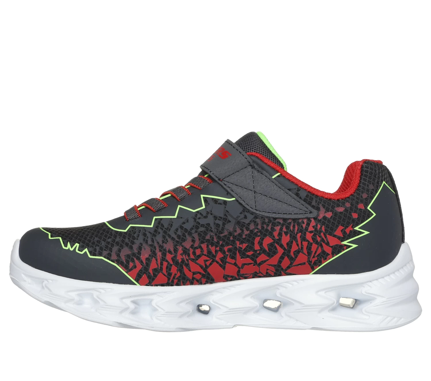 Light up their steps with sporty style and comfort in Skechers S-Lights®: Vortex 2.0 – Zorento. Featuring a synthetic upper with a cushioned insole, stretch laces, adjustable instep strap, and a step-activated light-up midsole.