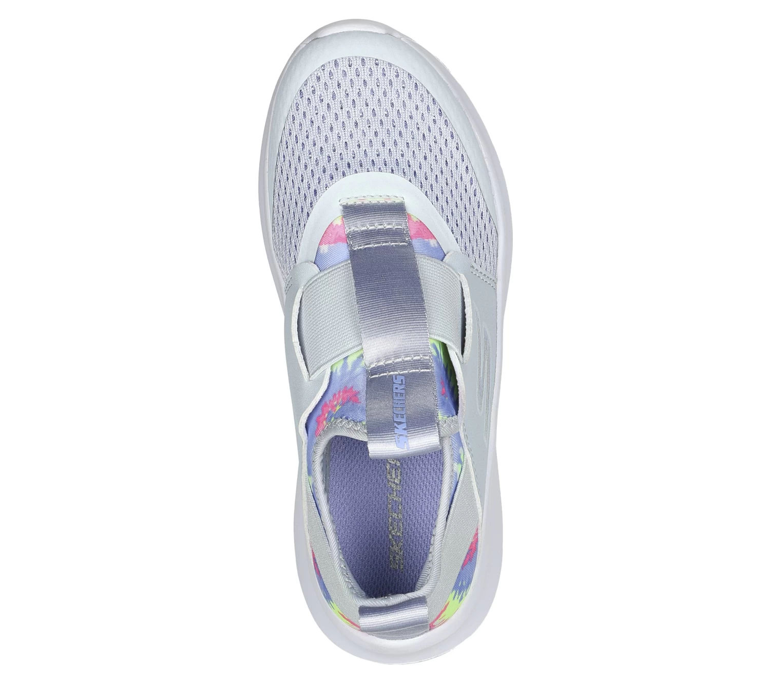 Move with an extra step of comfort wearing Skechers Skech Fast – Surprise Groove. This slip-on features a mesh and synthetic upper with a tie-dye trim, elasticized quarter brace and a lightweight cushioned midsole.
