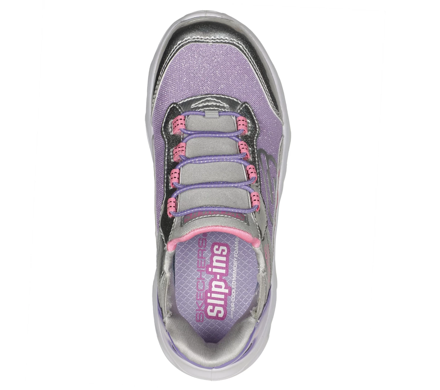 - Glitter mesh and metallic synthetic upper with stretch laces