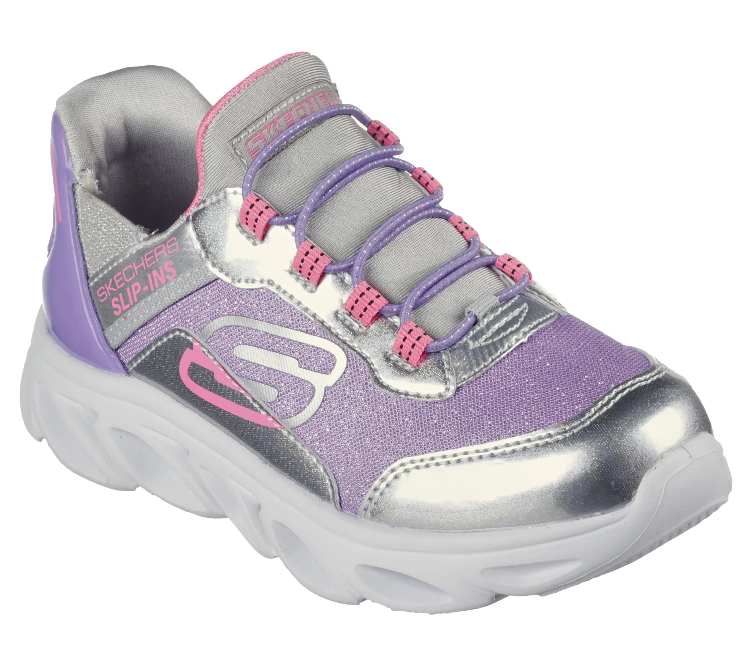 Step into easy-wearing style and comfort with Skechers Hands Free Slip-ins™: Flex Glide. Designed with our exclusive Heel Pillow™. This style features a glitter mesh fabric and metallic synthetic upper with stretch laces, plus a Skechers Air-Cooled Memory Foam® cushioned comfort insole.