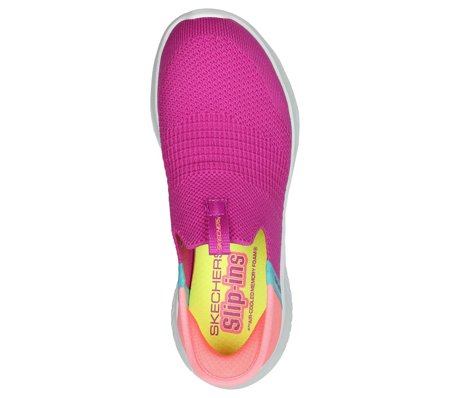 Step-in to effortless comfort with Skechers Hands Free Slip-ins™: Ultra Flex 3.0 – Fresh Time. Designed with a unique molded heel panel and Comfort Pillow™, this style features a Stretch Fit® engineered Skech-Knit upper and a cushioned Skechers Air-Cooled Memory Foam® insole.