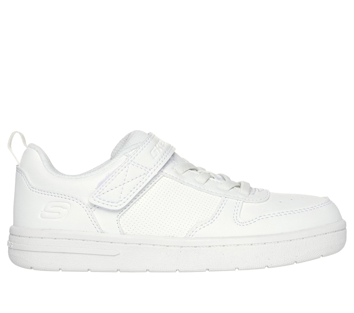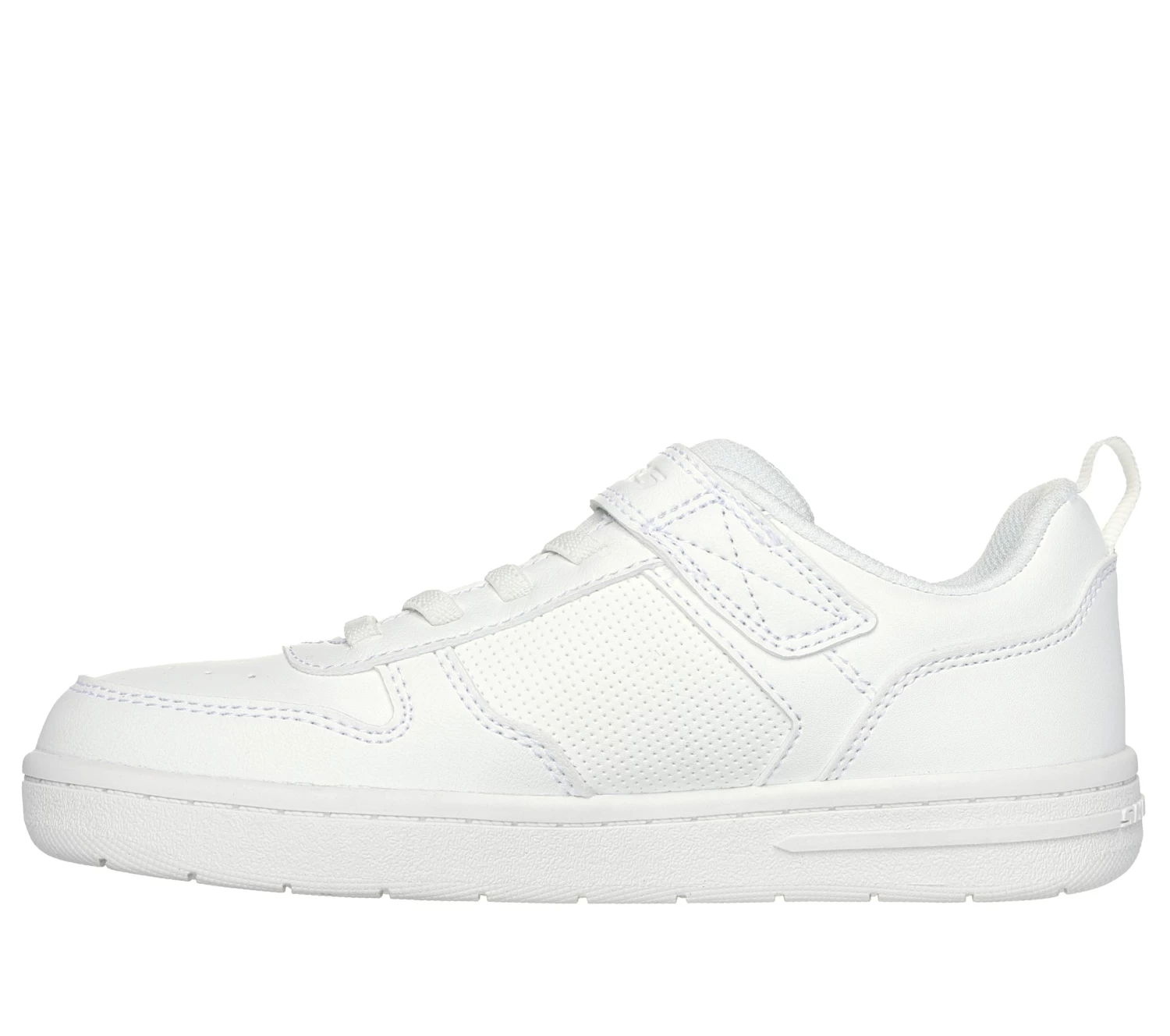 Get a kick of classic style and comfort with Skechers Street™ Smooth Street. This machine washable court style sneaker features a smooth and textured synthetic upper with stretch laces, adjustable instep strap, and a cushioned insole.