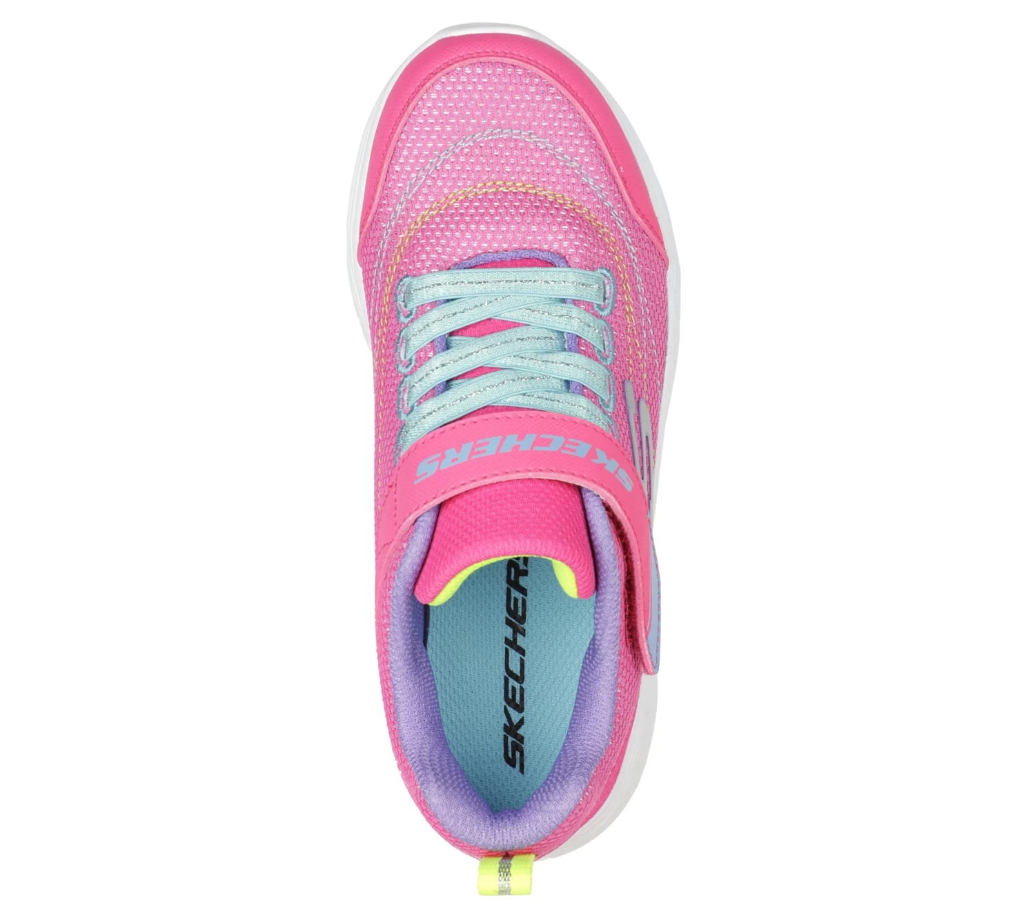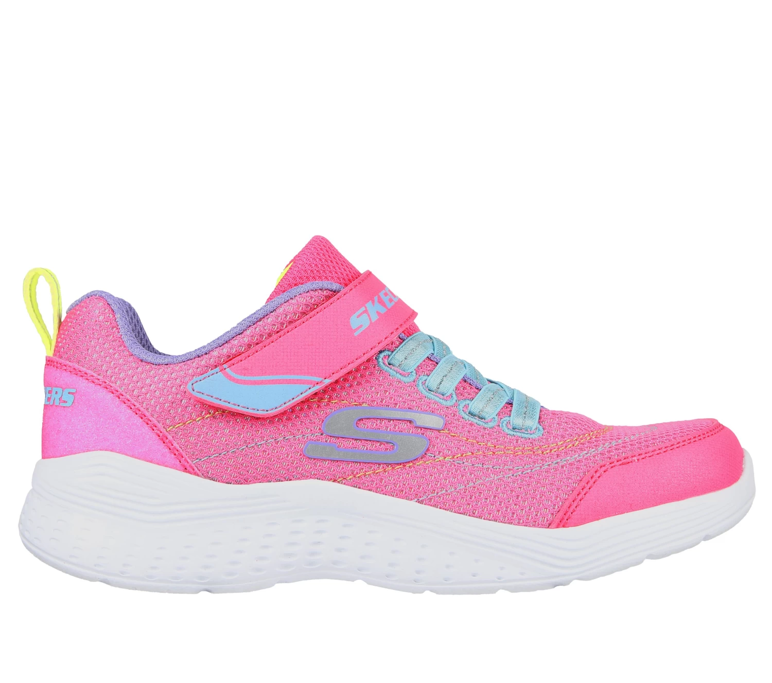 Play all day in easy-wearing comfort with Skechers Snap Sprints – Eternal Shine. This lightweight sporty design features a glittery mesh and synthetic upper, a stretch-laced front, and adjustable instep strap.