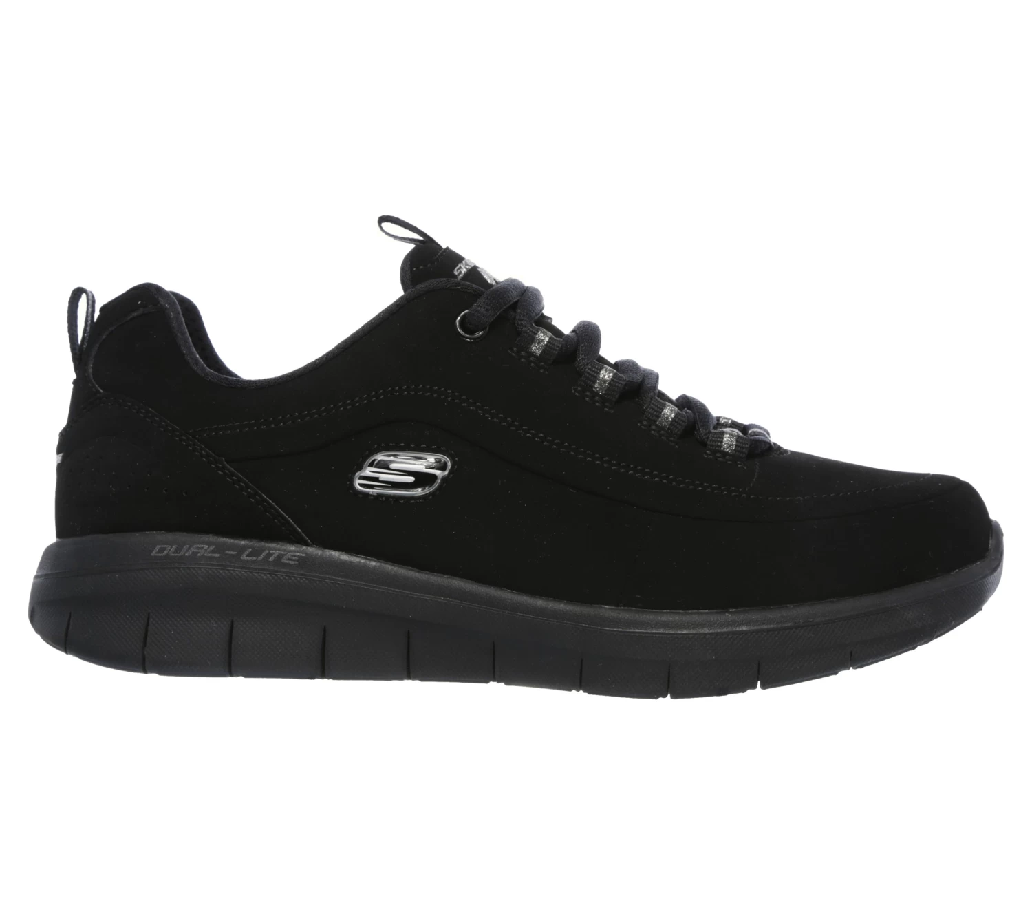 Classic sporty style gains even more comfort and sleek style in Skechers Synergy 2.0 – Side-Step. This athletic lace-up design features a breathable mesh and trubuck leather upper with an Air Cooled Memory Foam® insole.