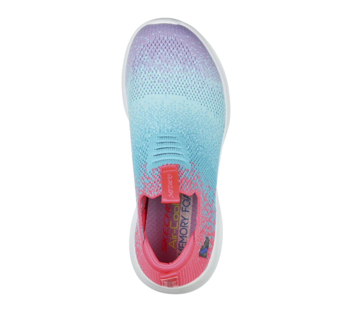Pretty ombre shades and soft stretchable comfort combine in the Skechers® Ultra Flex – Color Perfect shoe. This sporty pull-on sneaker features a breathable athletic mesh knit upper with a Stretch Fit® and a Skechers Air-Cooled Memory Foam® cushioned insole.