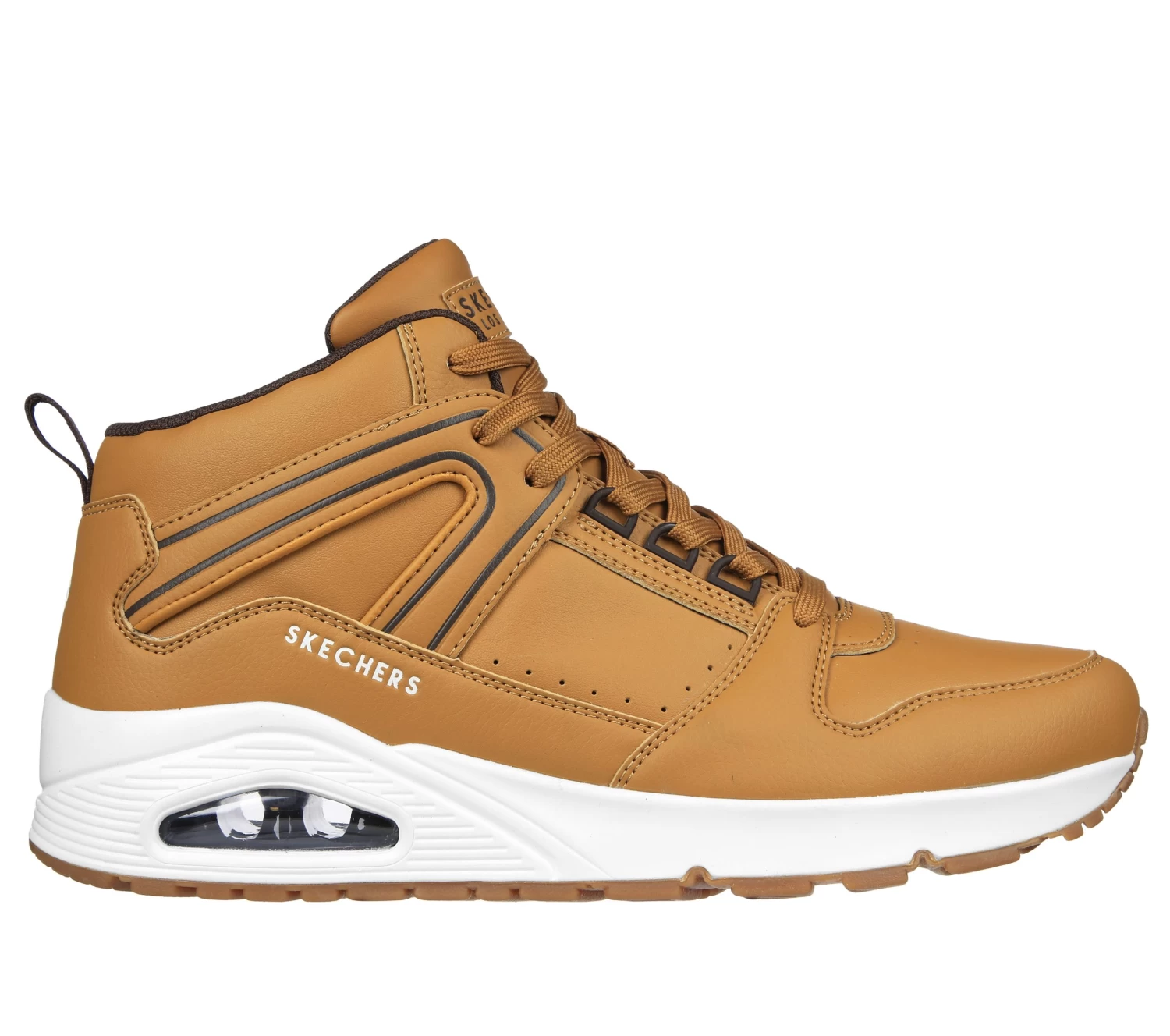 Step up your look with striking style in Skechers Street Uno – Keep Close. This lace-up fashion sneaker features a synthetic duraleather upper with a Skechers Air-Cooled Memory Foam® insole and a visible Skech-Air® airbag midsole.
