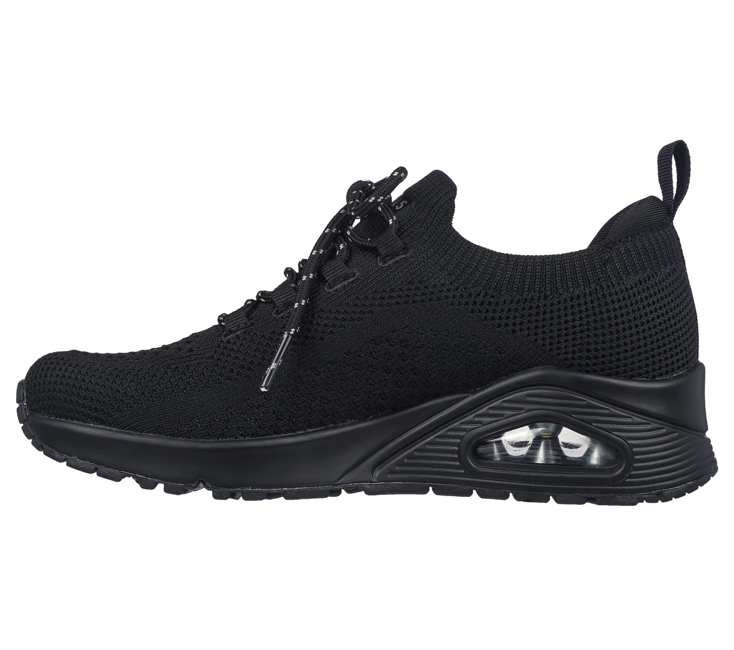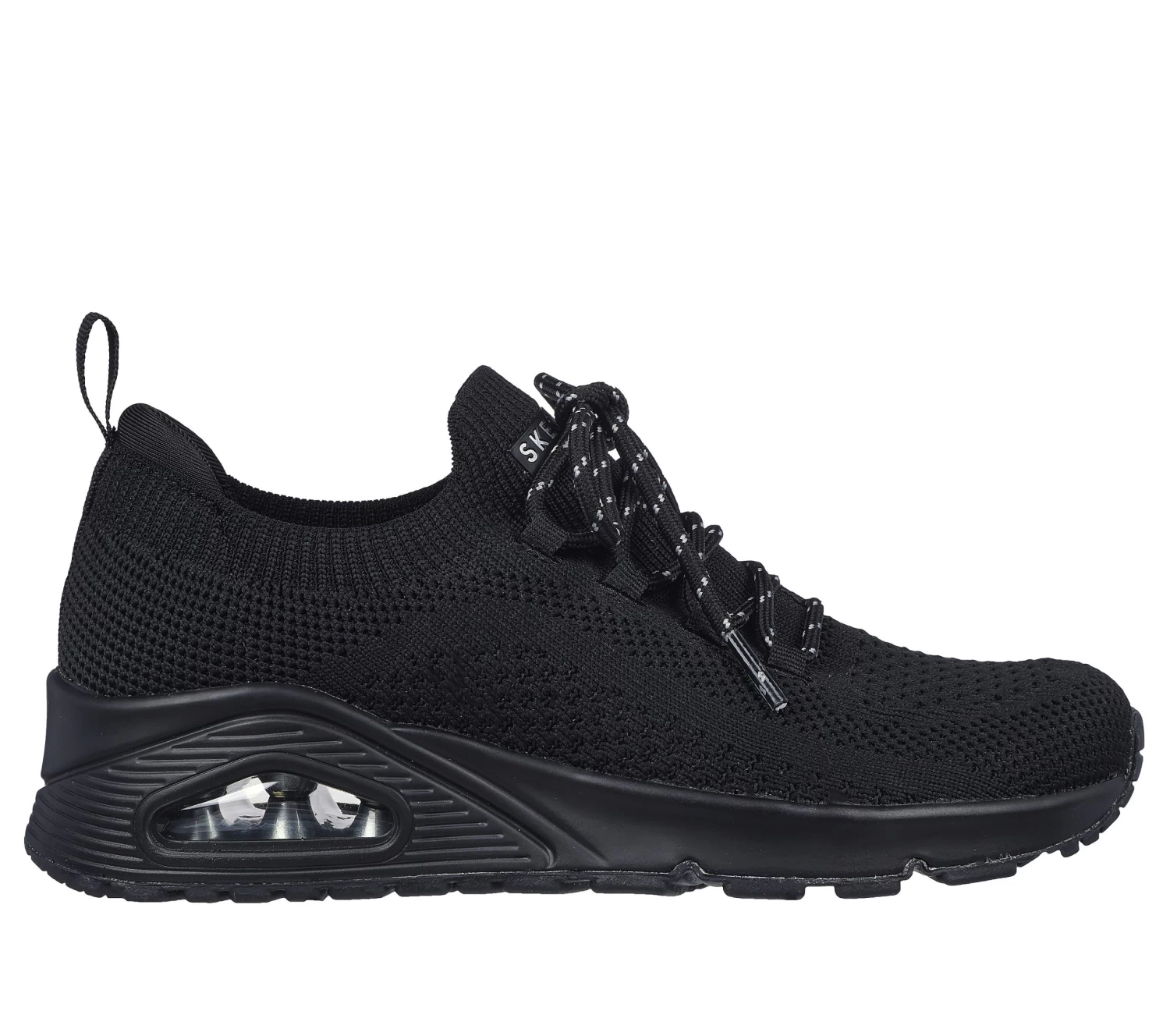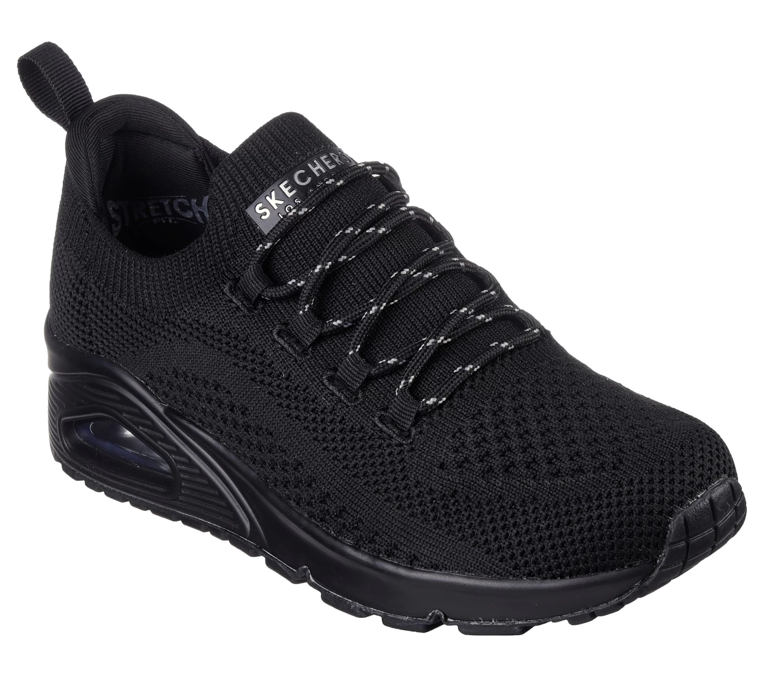 Seamless style and comfort combine in Skechers Street™ Uno – Everywear. This lace-up athletic fashion design features a Stretch Fit® engineered knit upper, a Skechers Air-Cooled Memory Foam® insole, and a platform wedge with visible Skech-Air® midsole.