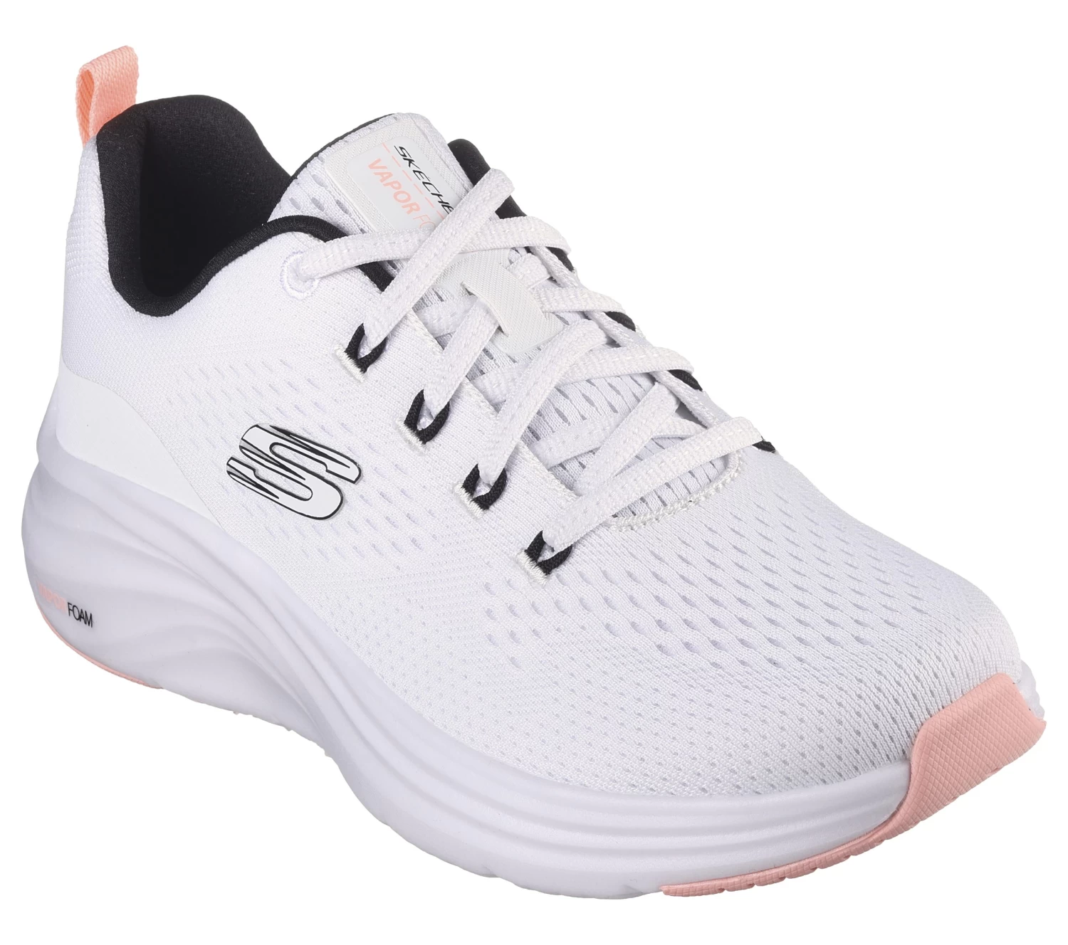Experience lightweight comfort and sleek style wearing Skechers Vapor Foam™ – Fresh Trend. This vegan lace-up features an engineered mesh upper with a Skechers Air-Cooled Memory Foam® insole, plus ultra-lightweight Vapor Foam™ cushioning.