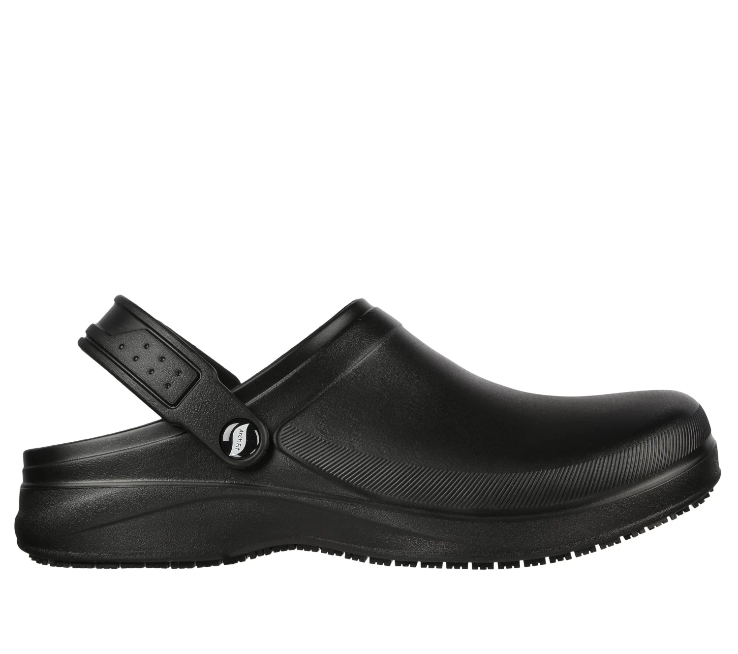 Slip on supportive comfort before starting your prep work with Skechers Work™ Arch Fit®: Riverbound SR. This slip-resistant clog features a sculpted flexible EVA upper with a removable Arch Fit® contoured footbed and a convertible heel sling strap.