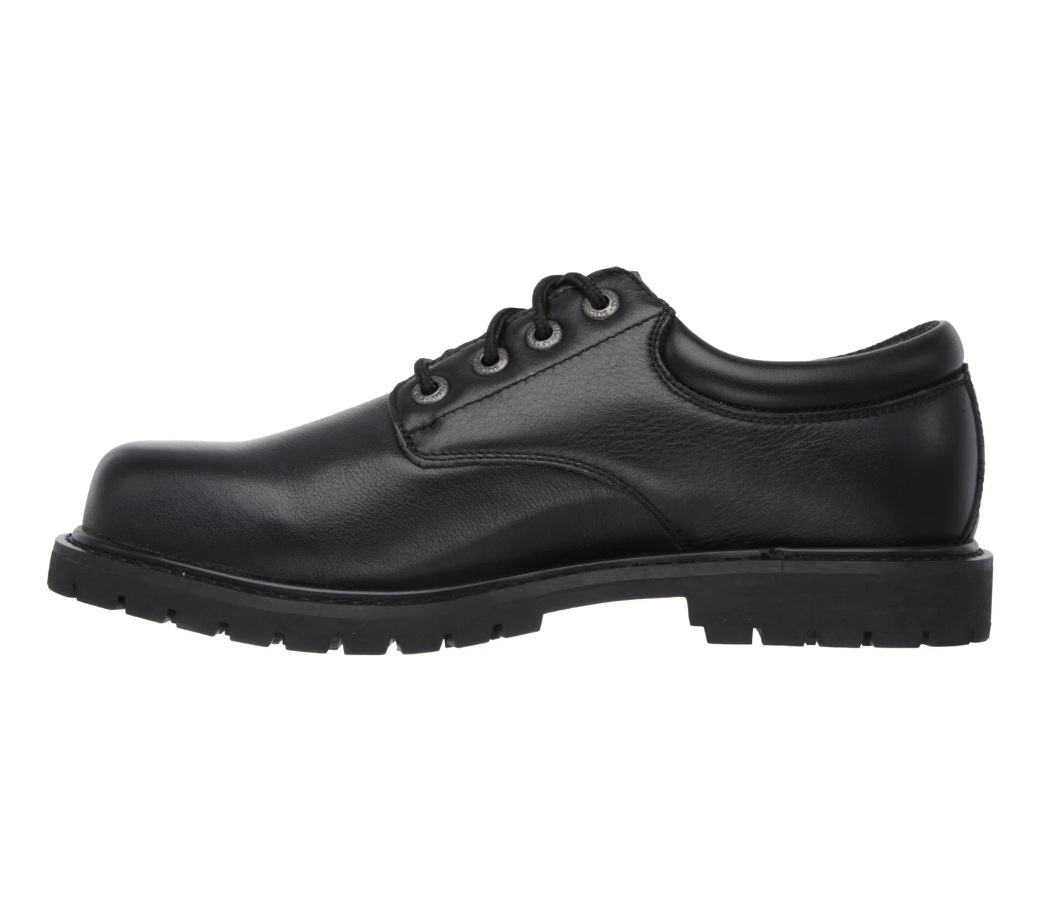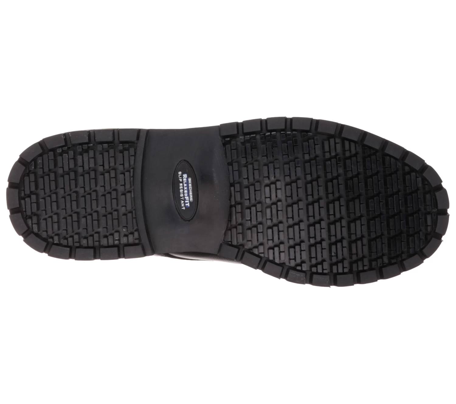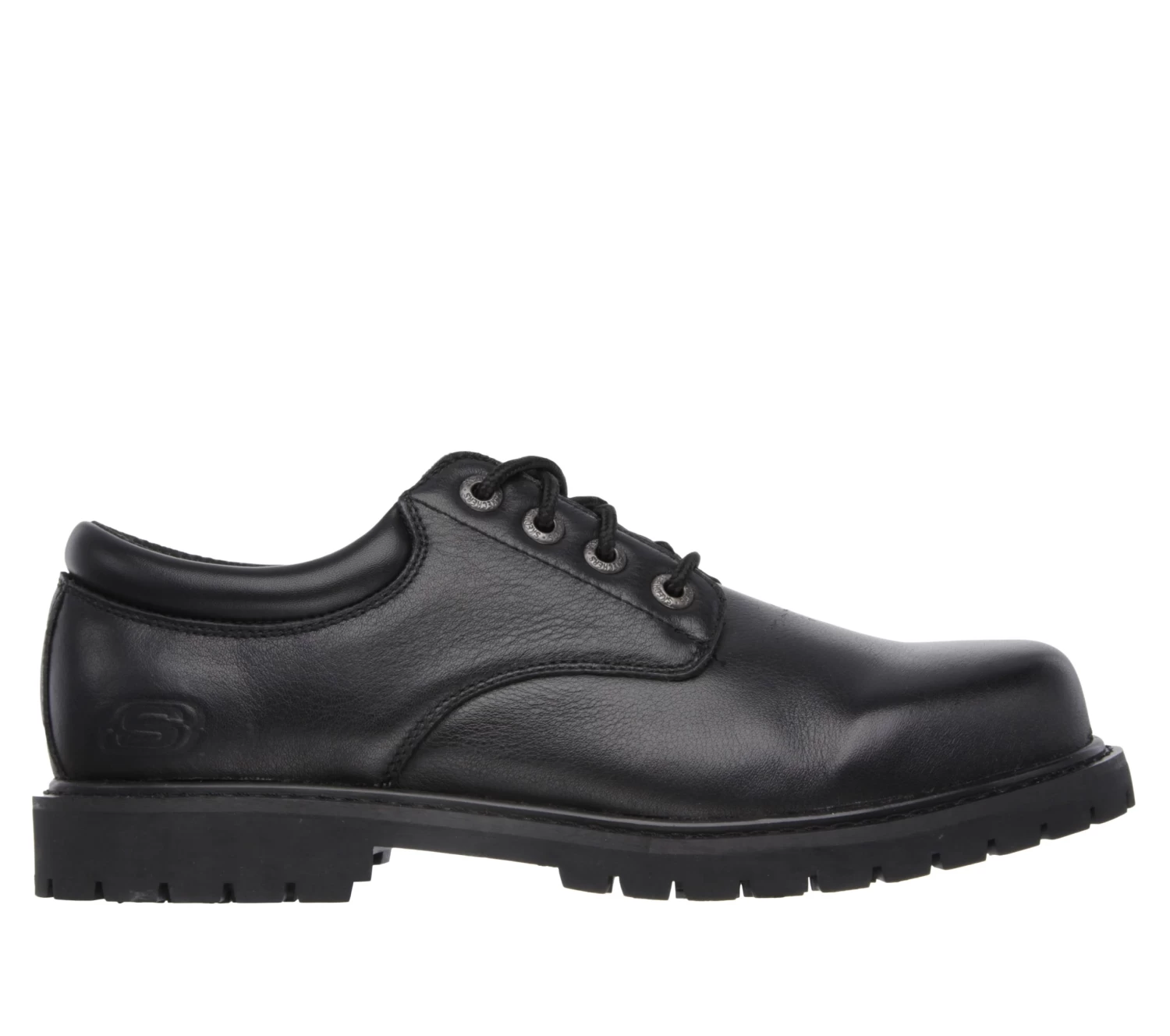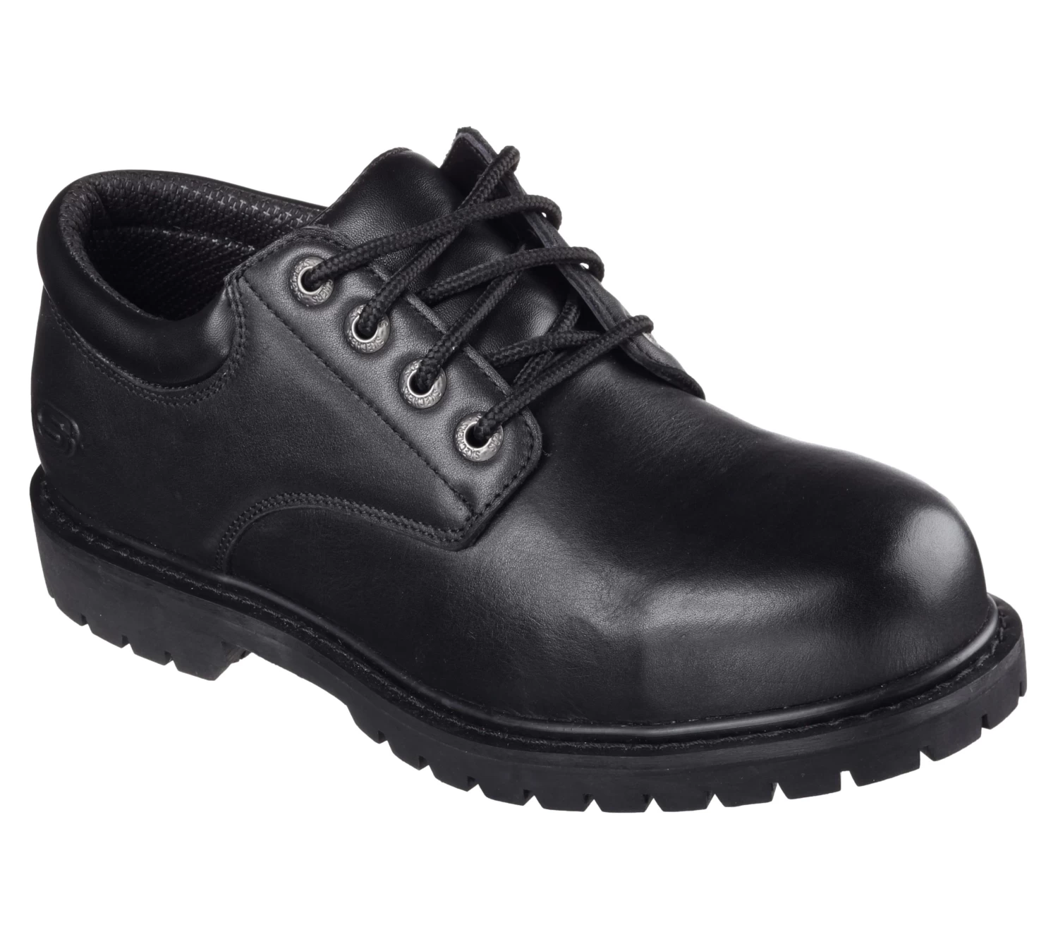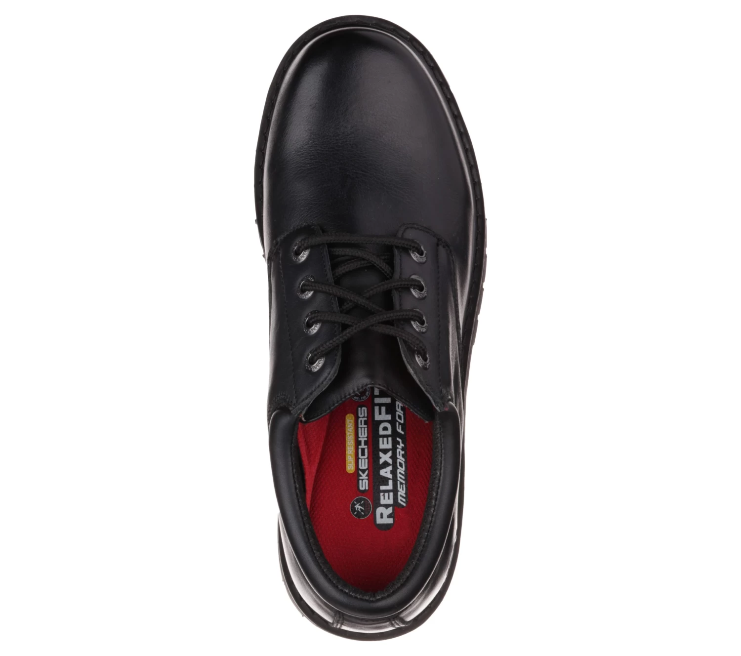 Work in style and total comfort wearing Skechers Work™ Relaxed Fit®: Cottonwood – Elks SR. Featuring a smooth leather upper in a lace-up slip-resistant work design with a cushioned Skechers Memory Foam™ insole.