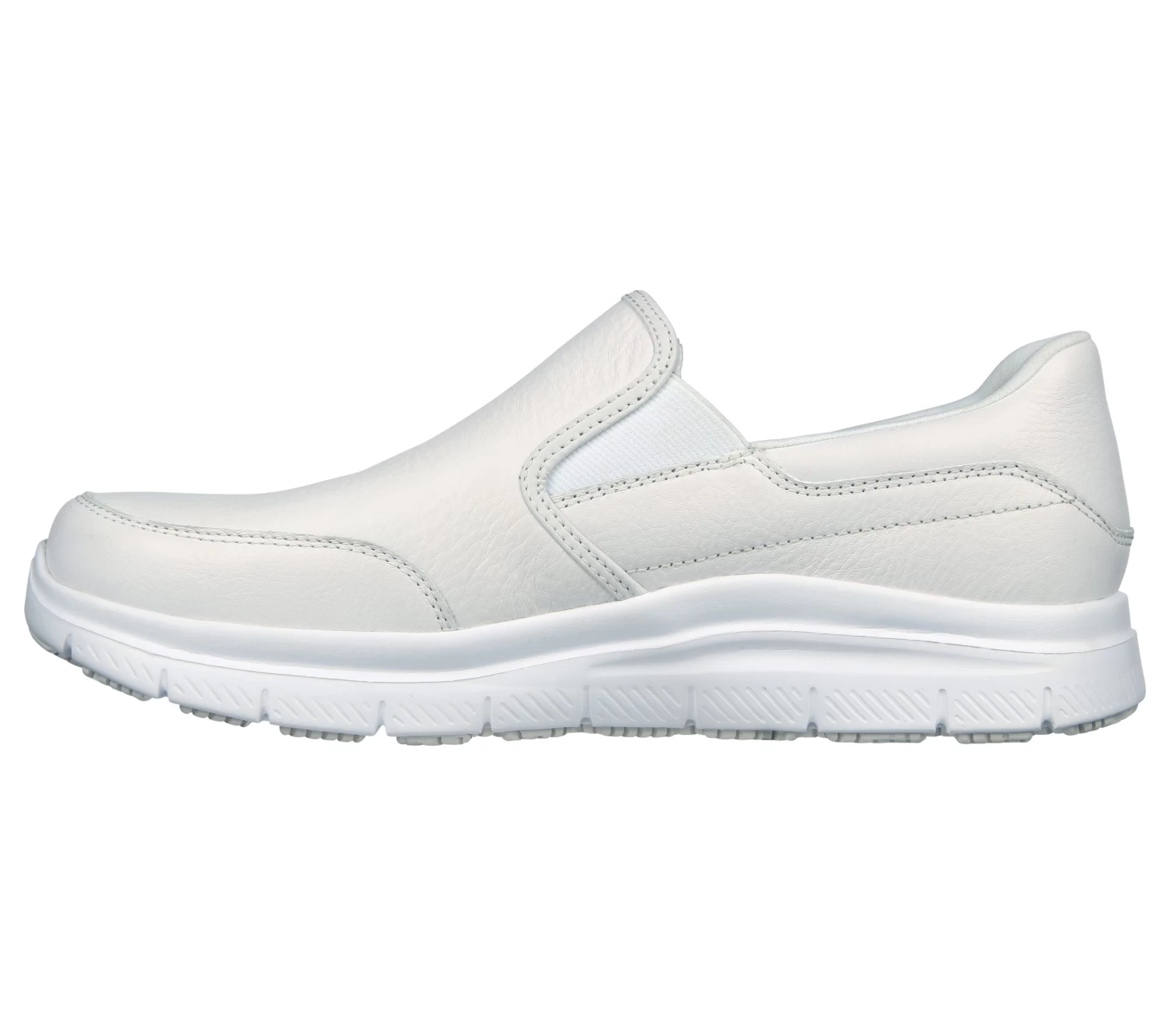 Smooth versatile style, surefooted safety, and comfort combine in Skechers Work™ Relaxed Fit®: Flex Advantage SR – Bronwood. This water repellant work style features a smooth leather and synthetic upper with a slip-resistant traction outsole, and a cushioned Skechers Memory Foam™ insole.